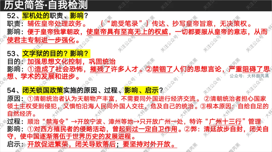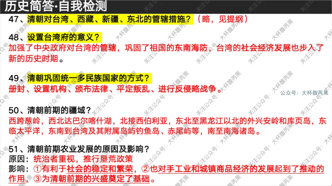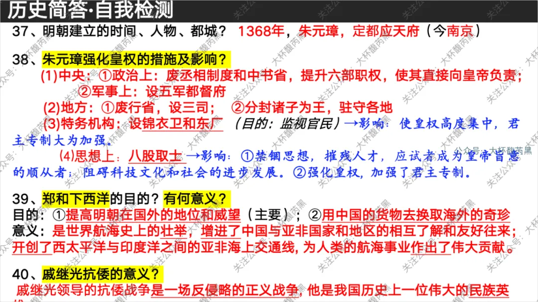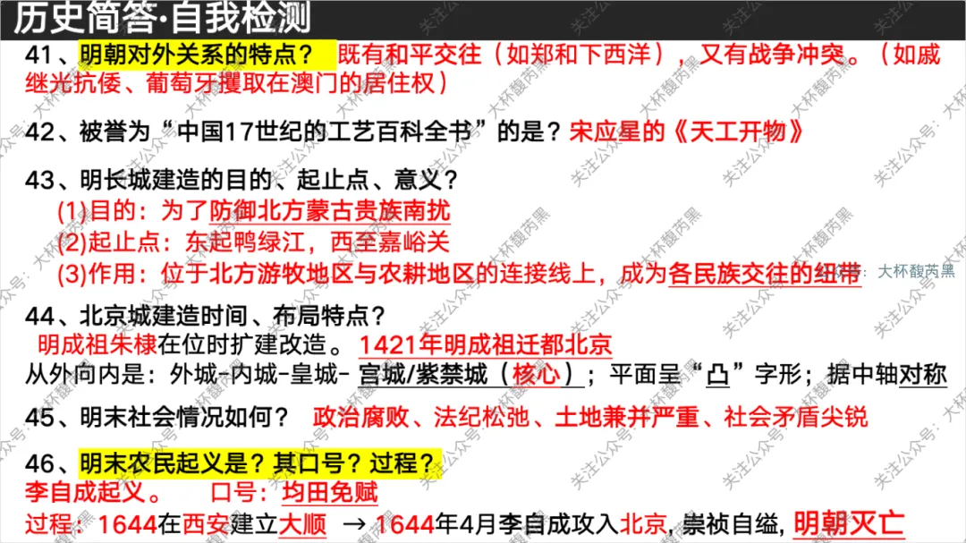 今天分享的是七下历史问答式自我检测课件 含高频错别字整理,自我检测用。
