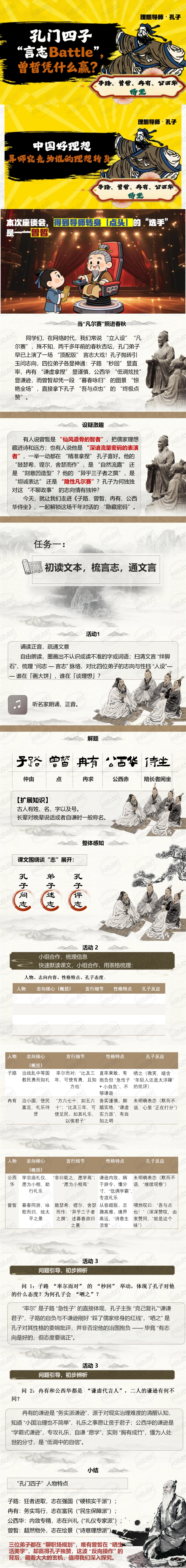 【原创设计】孔门四子 “言志 Battle”,曾皙凭什么赢? ——《子路、曾皙、冉有、公西华侍坐》教学设计