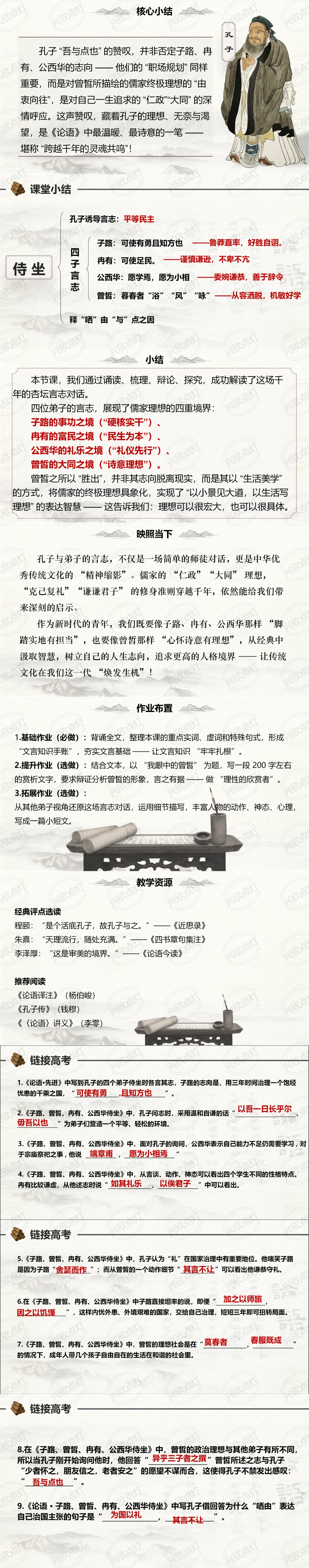 兴欣点灯原创课件,如有需要后台私信“侍坐”二字即可领取!
