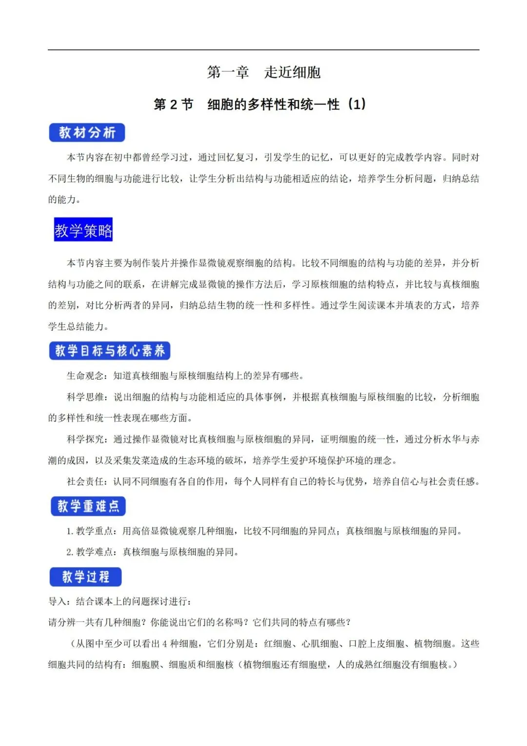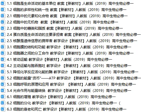 >高中人教版生物必修一核心素养教案+课件+学案+试卷等,可下载!