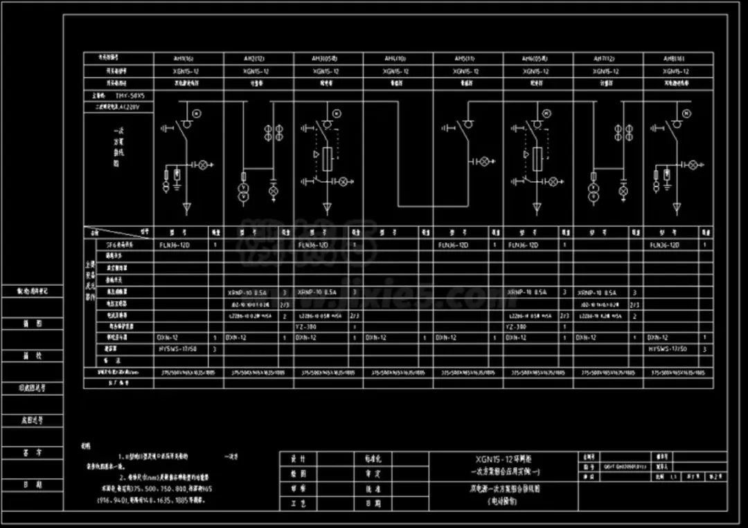 高压开关柜编号的作用:开关柜编号用于开关柜的位置安装和识图的顺序。【1AH1】这个标号的意思是:前面的【1】表示的是第一组柜子,中间的【AH】表示的是高压开关柜,后面的【1】表示的是第一台柜子。如果没有多组柜子,前面的【1】可以不要。