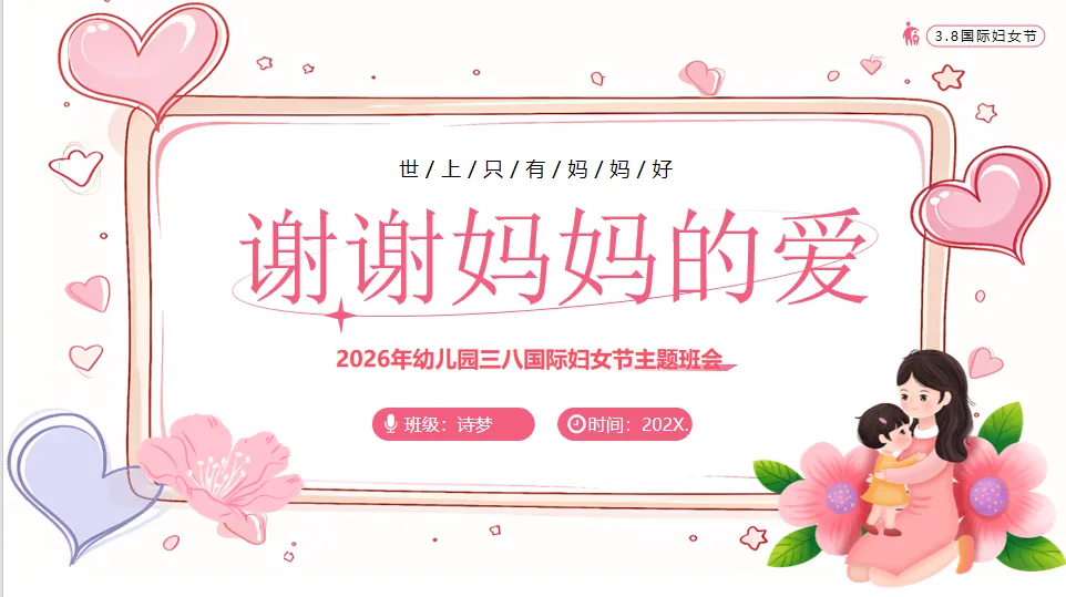 幼儿园妇女节教学课件《谢谢妈妈的爱》、免费领!
