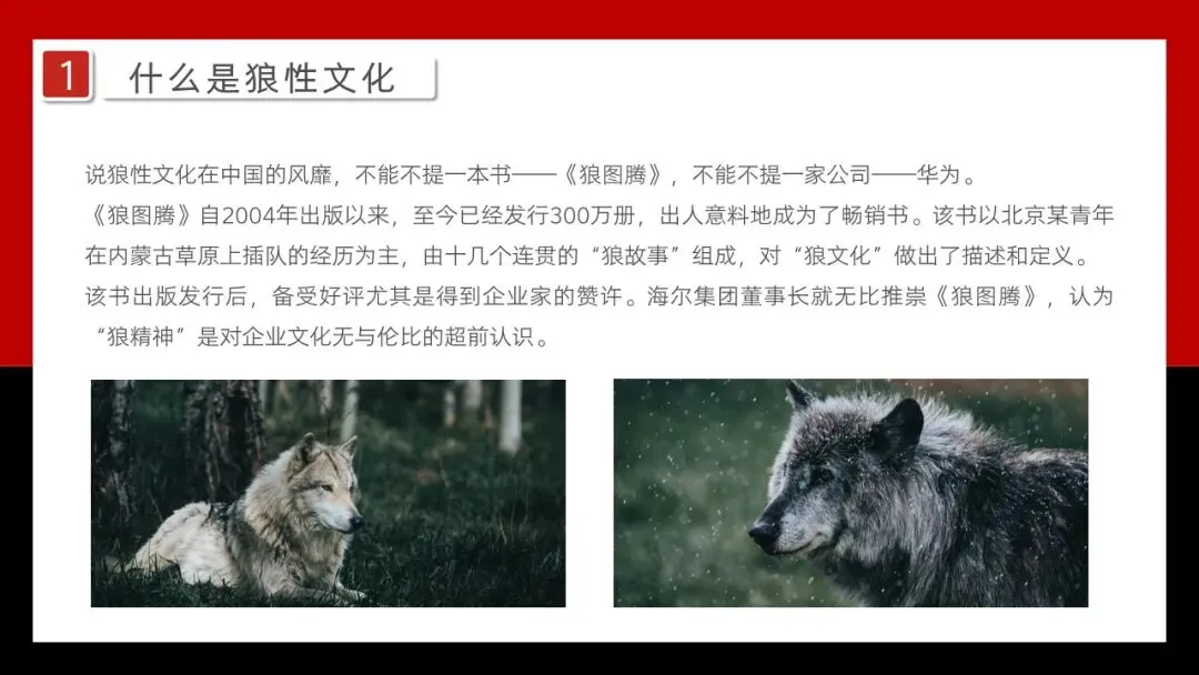 说狼性文化在中国的风靡,不能不提一本书——《狼图腾》,不能不提一家公司——华为。