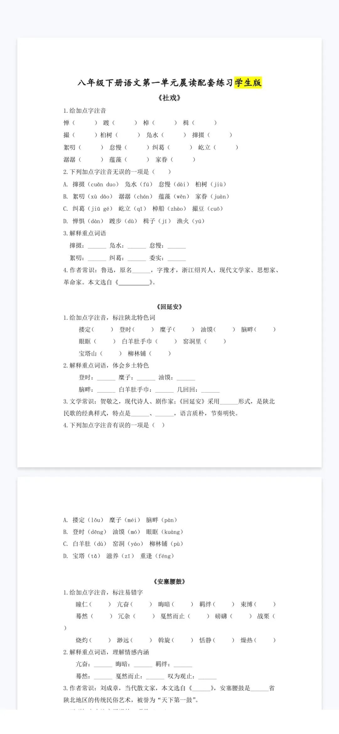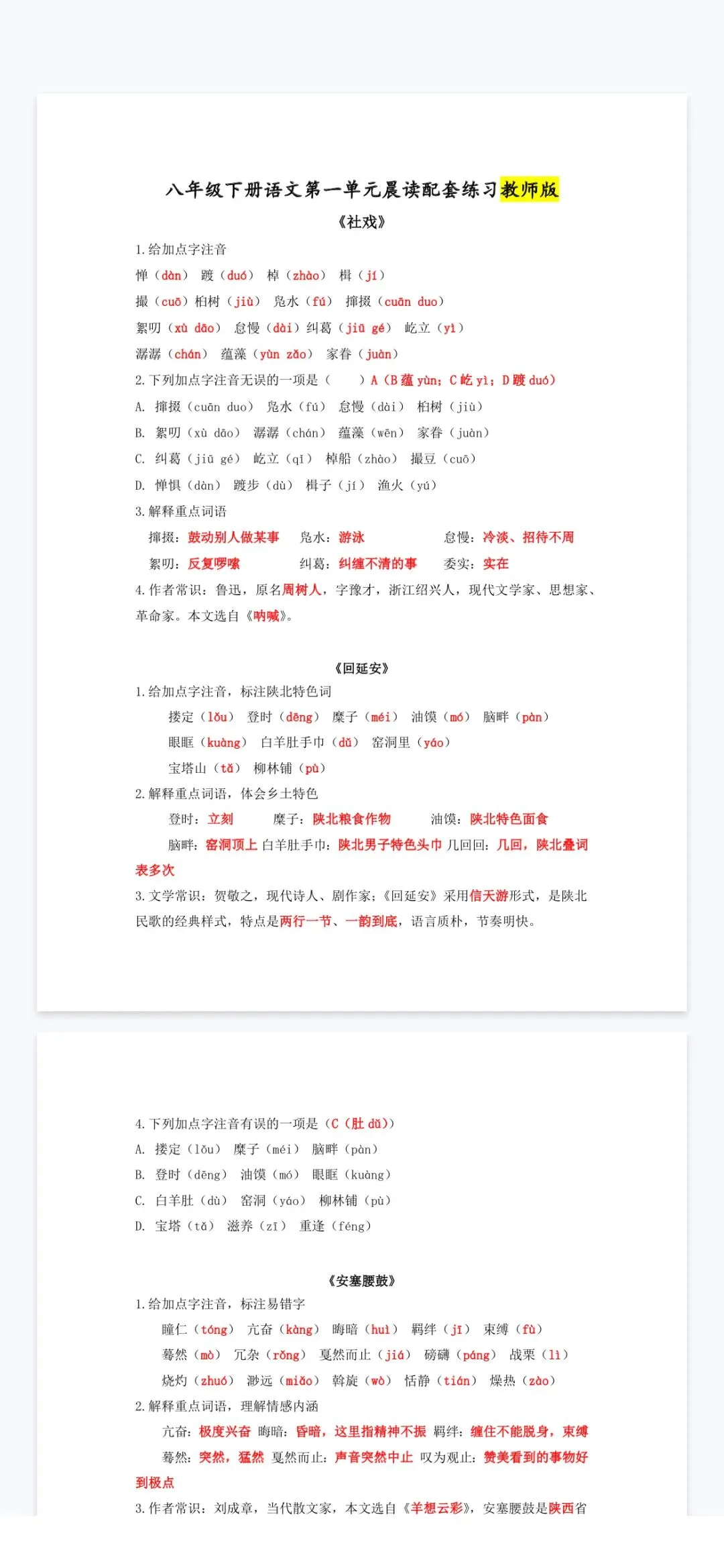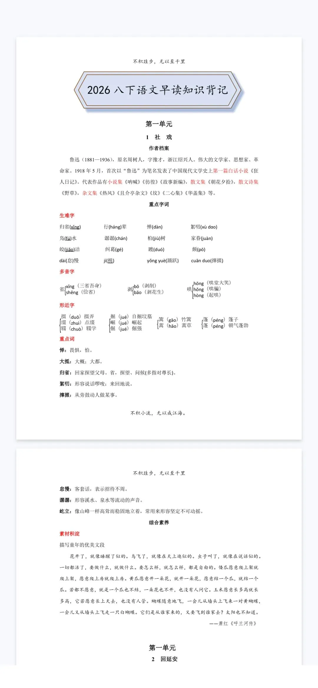 >八年级下册新教材晨读课件+配套练习+背记手册