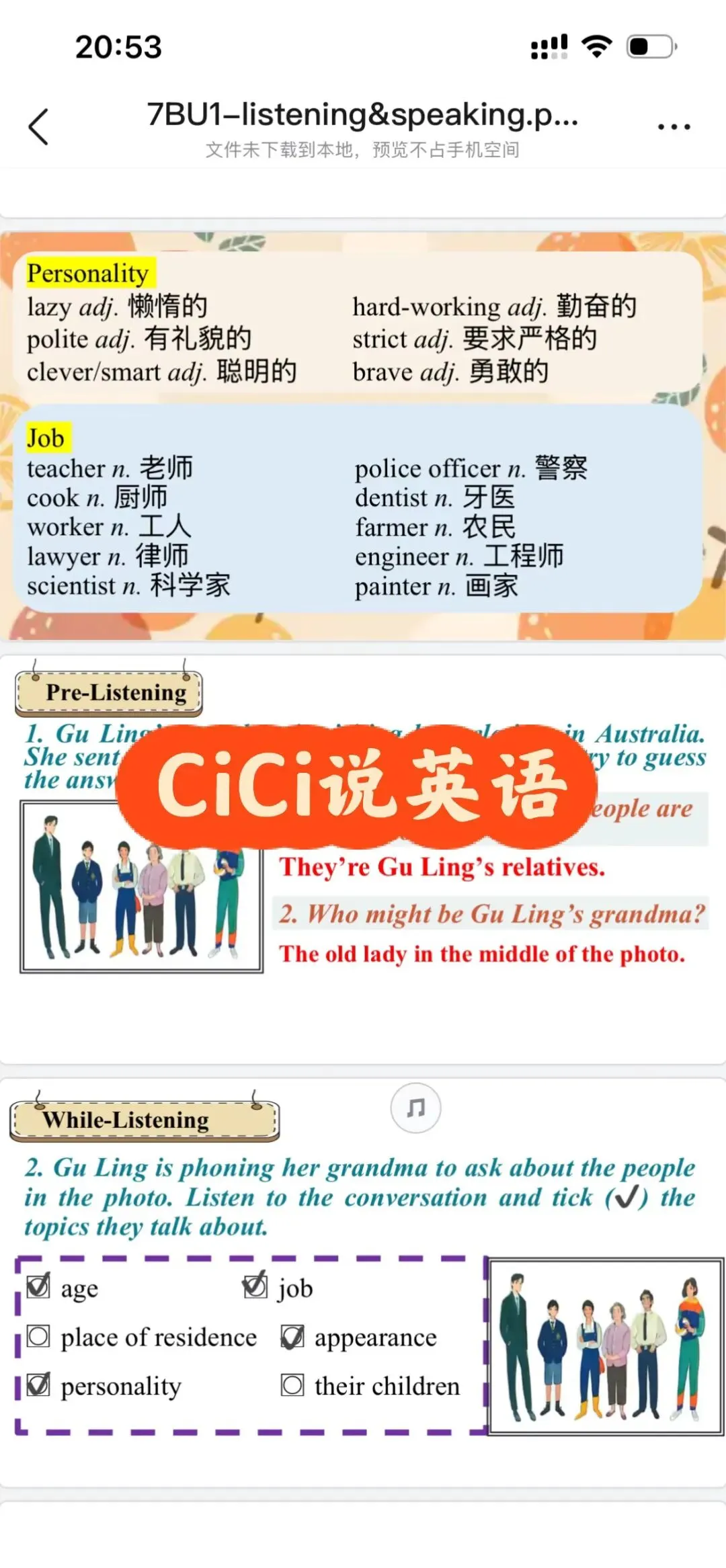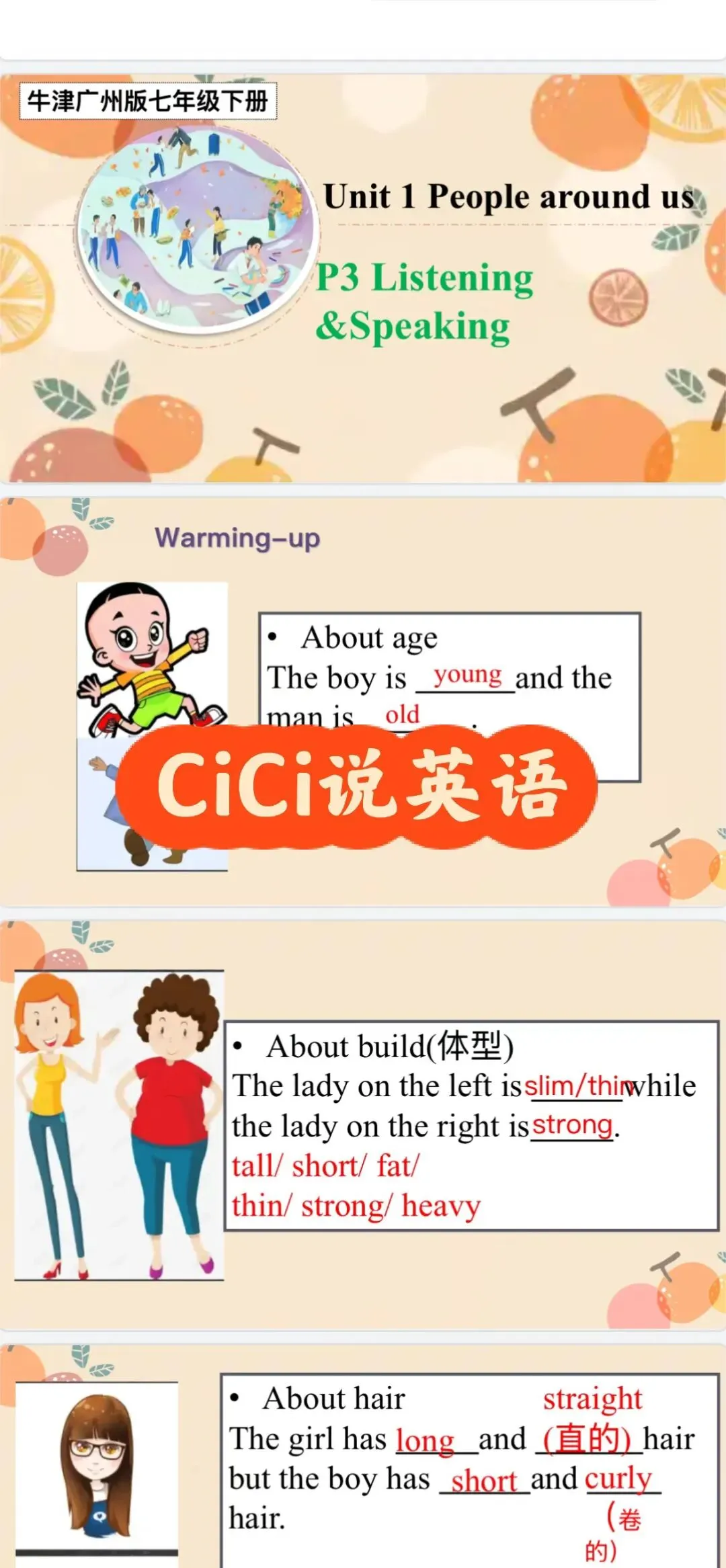 新沪教广州英语七下Unit1 People around us 听说课件,Listening & Speaking备课思路分享,加入了广州初中英语听说的题型训练,在常规课堂中尽可能强化学生英语听说适应能力。沪教版的教材受众比较小,有需要交流上课的朋友