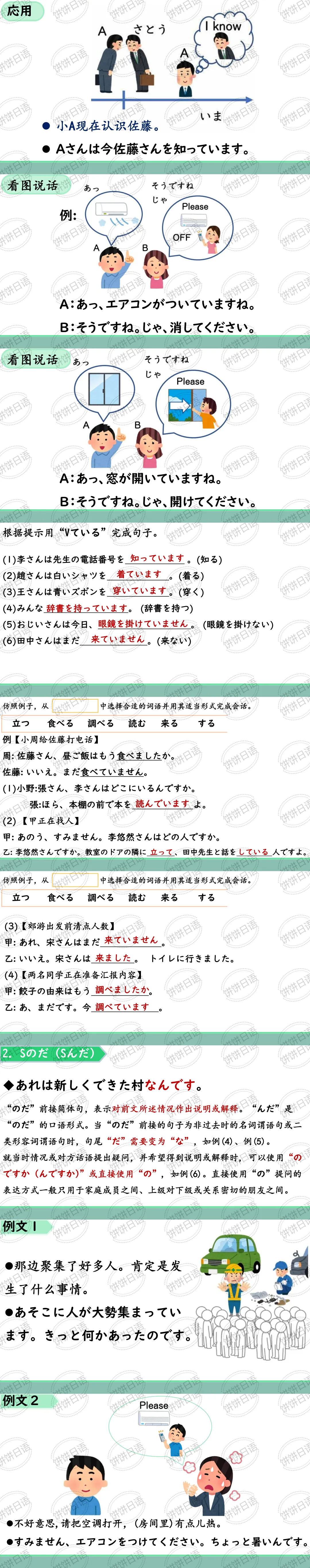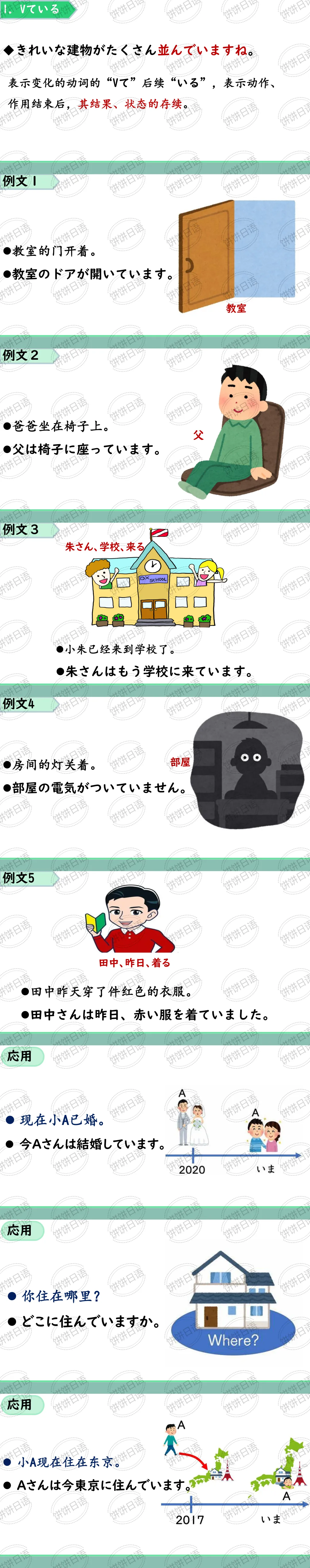 1. Vている。表示变化的动词的“Vて”后续“いる”,表示动作、作用结束后,