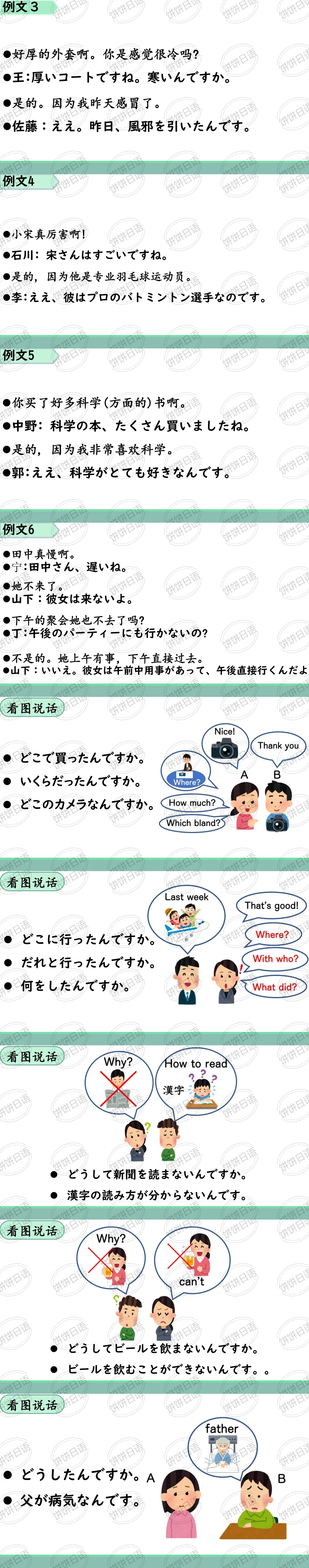 2. Sのだ(Sんだ)“のだ”。前接简体句,表示对前文所述情况作出说明或解释。“んだ”是“のだ”的口语形式。当“のだ”前接的句子为非过去时的名词。谓语句或二类形容词谓语句时,句尾“だ”需要变为“な”。
