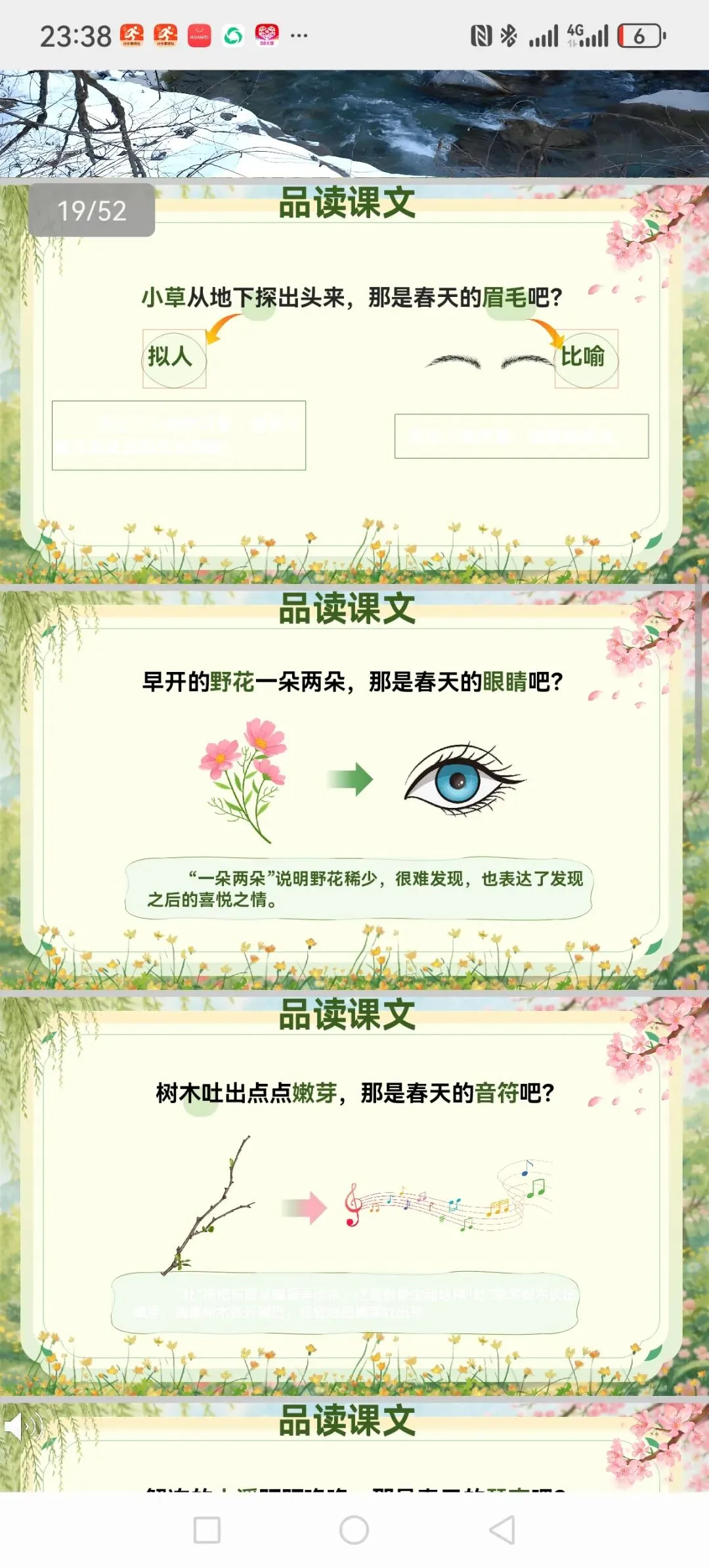 师:对!这是早春时节,春天像个害羞的小姑娘,遮遮掩掩,躲躲藏藏。我们要仔细地找,才能发现她。