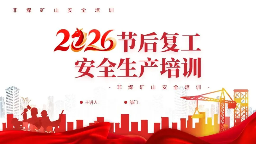PPT通过视频形式展现出来,让大家看到的更直接 清楚 也更简单!上传 PPT和文档都有完整版的,大家都可以下载修改编辑开工第一课!2026年非煤矿山节后复工复产安全教育培训第一课