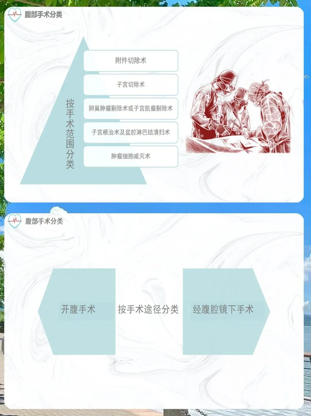 首先,我们进入第一部分:腹部手术分类。在开始护理工作前,我们必须对我们要面对的“战场”有一个清晰的认识。妇科腹部手术种类繁多,我们需要从三个维度来理解和分类。
