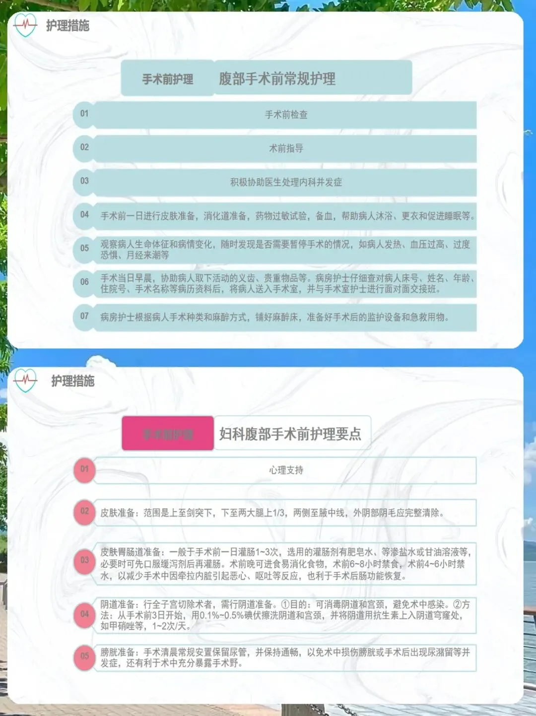 手术前的护理措施,我们需要从常规护理和妇科腹部手术前护理要点两个方面入手。
