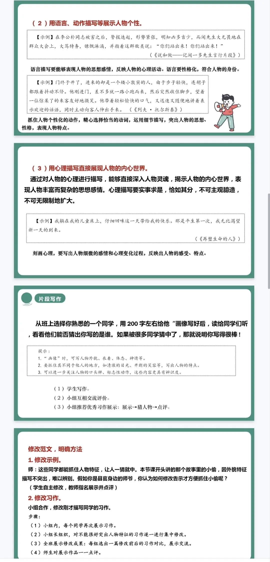 无论是课堂教学还是家庭辅导,这份课件都能让孩子告别“流水账”,笔下的人物从此有血有肉、个性鲜明。