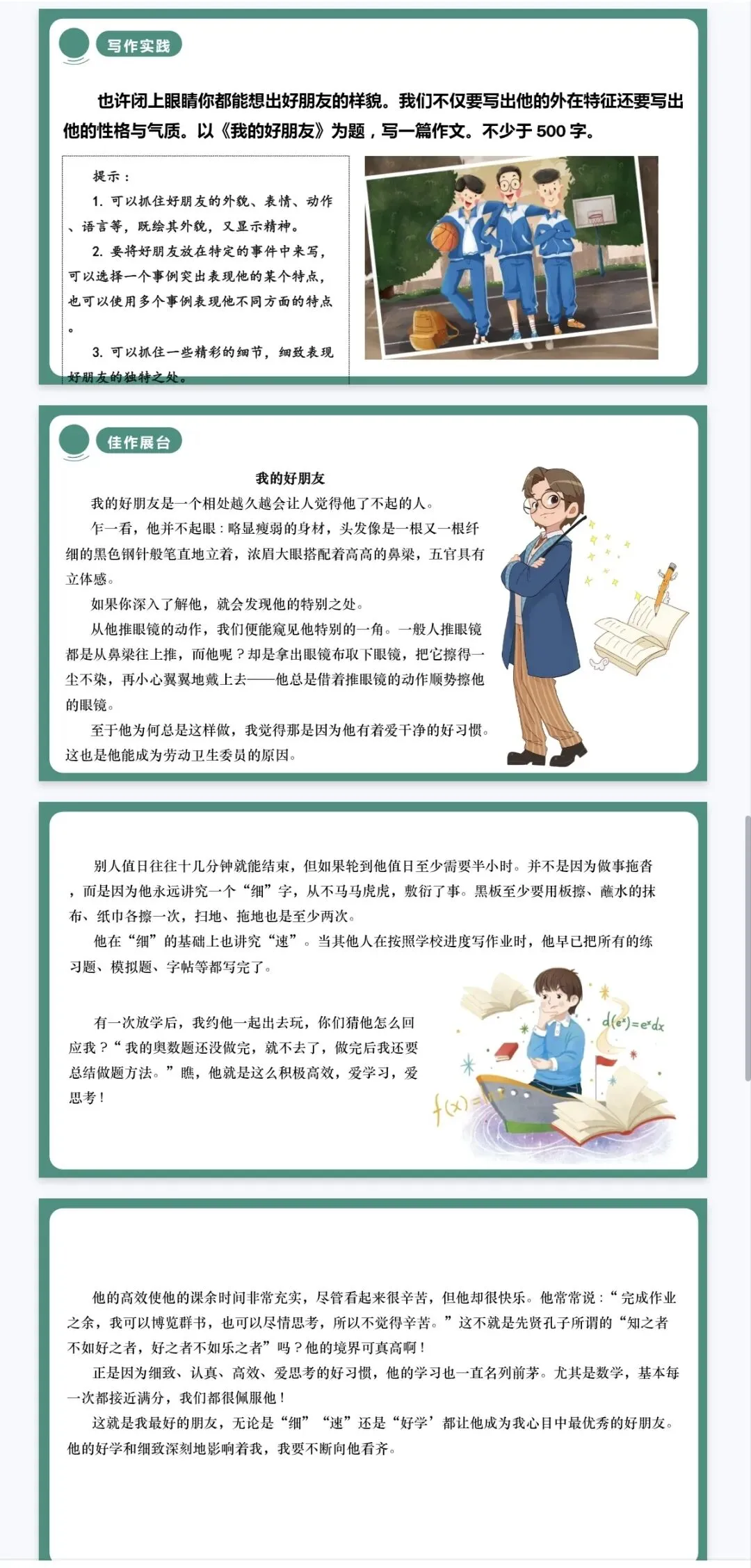 - 实战演练:从“给同学画像”到“我的好朋友”,再到“这样的人让我……”,层层递进,让孩子在练习中掌握细节描写与典型事例的运用。