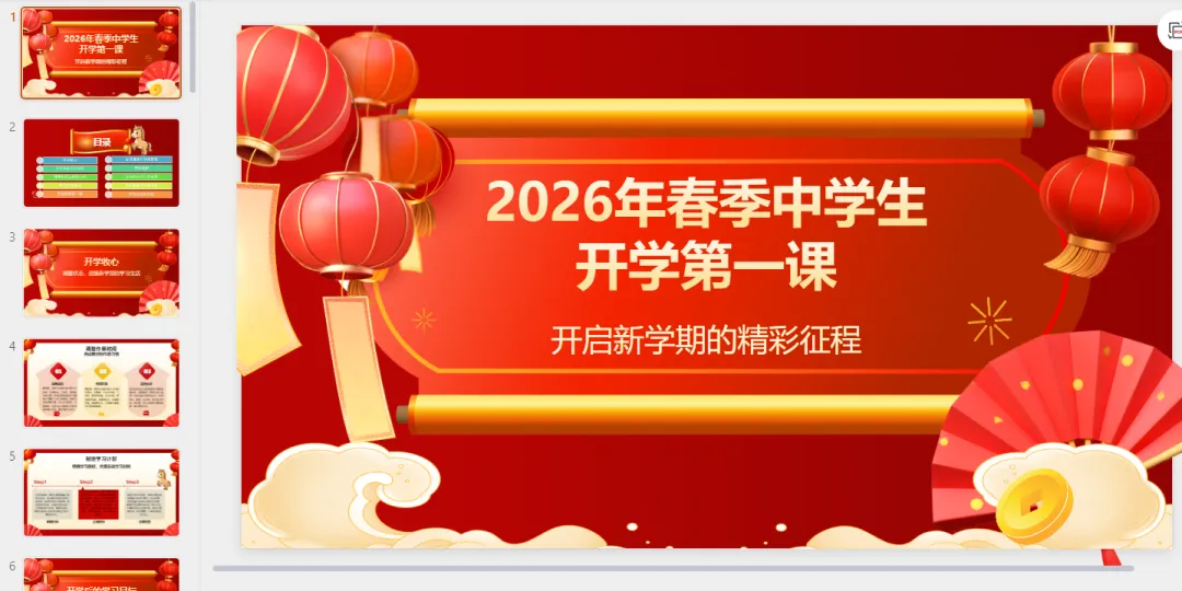 本次汇总100套开学第一课PPT。 资源包含2026春季主题班会课件。 文件均为无损画质。 用户保存后即可直接展示。