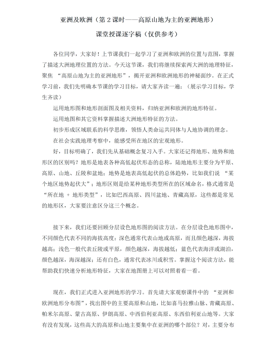 提炼大洲地形描述五步法:看平均海拔、析地表起伏、辨主要地形类型、理分布格局、找特色地形,形成通用分析模板,让学生掌握可复用的地理学习方法。