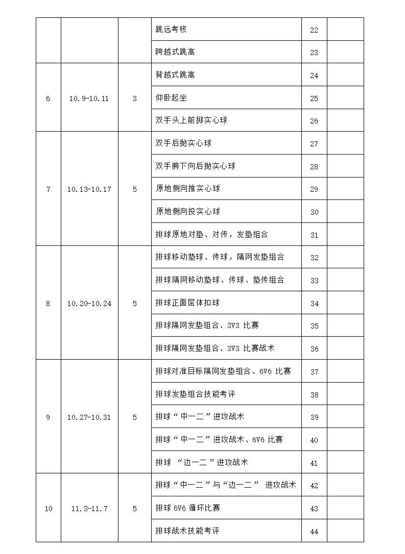 十 | 28 | 身体素质练习 2、选用教材(排球) |