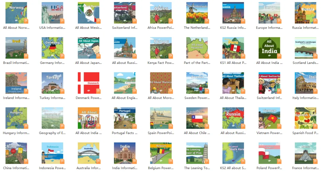 这些PPT覆盖了亚洲、欧洲、美洲和大洋洲等各大洲的国家。