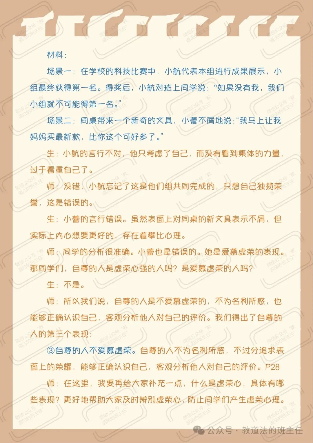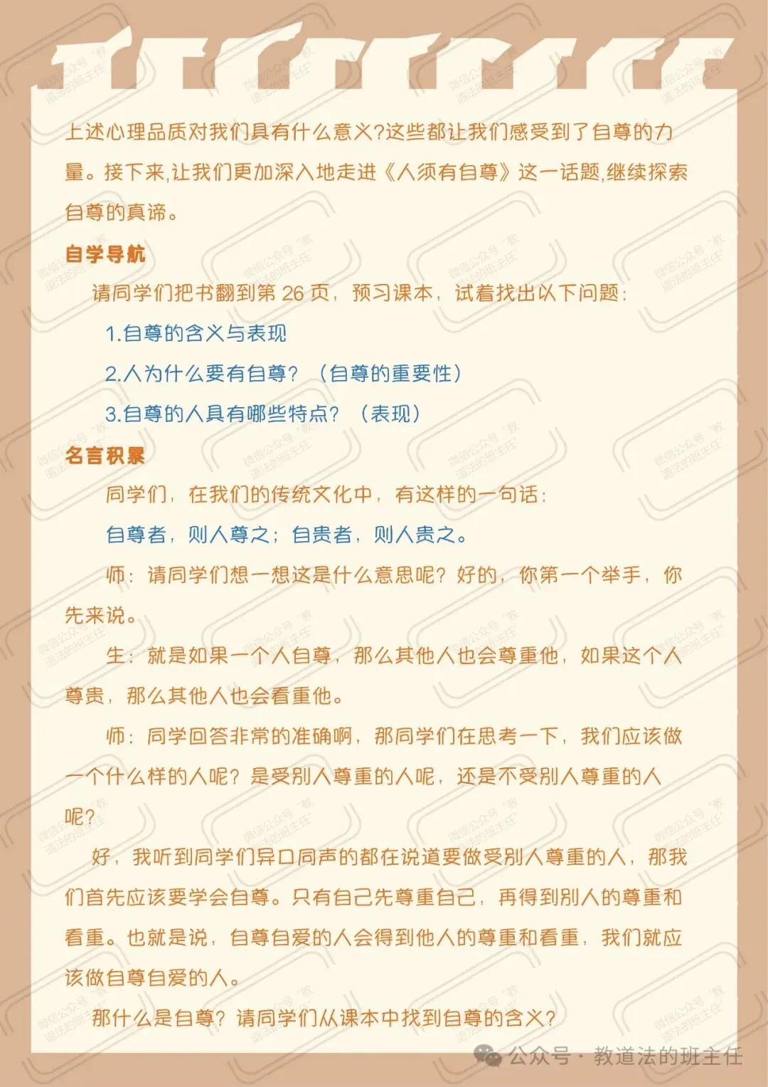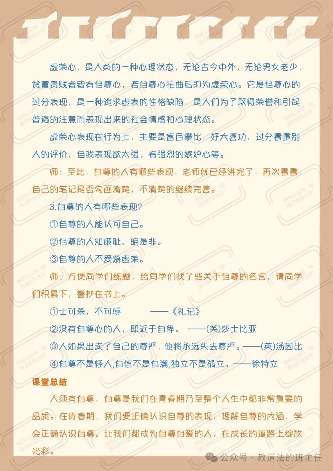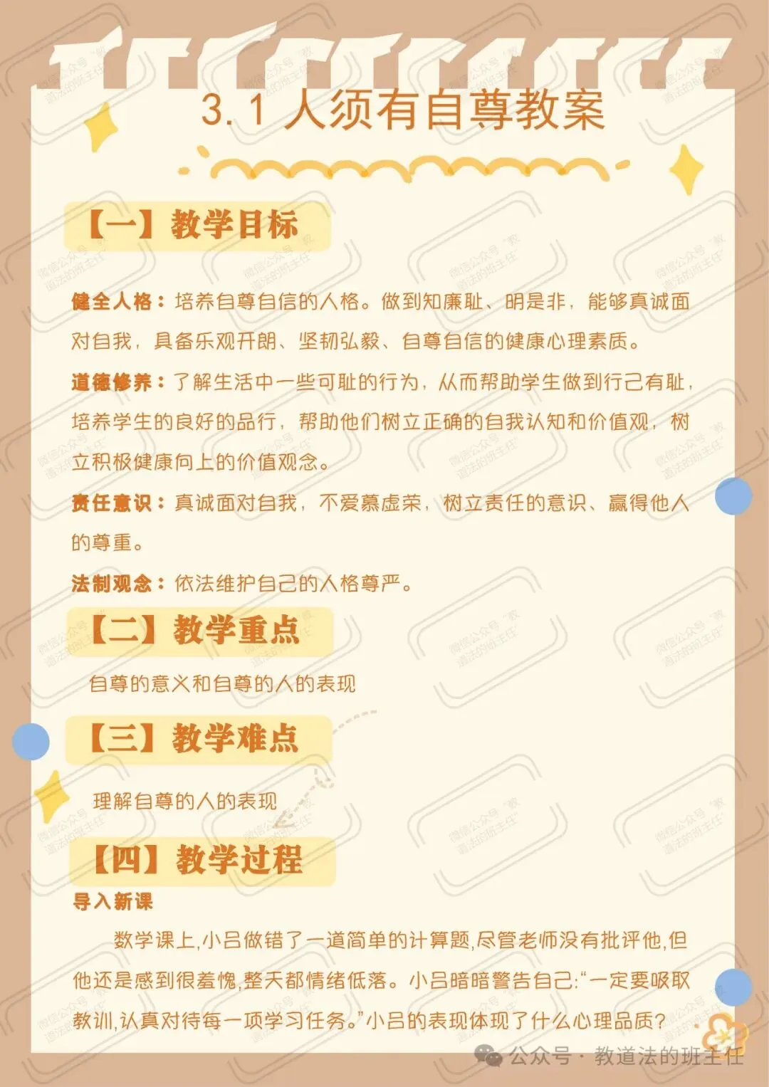 配套课堂教案|新教材七下道法3.1《人须有自尊》