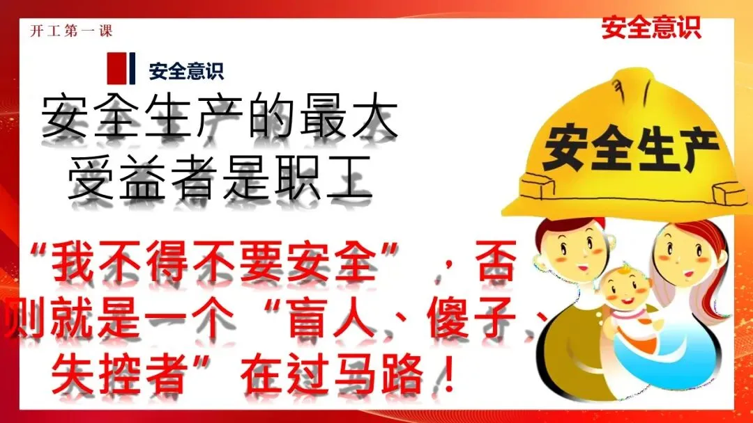 更多精品课件资料咨询可加小安:13522940595(收米)快乐春节!安全为本!一个欢乐、祥和、文明的春节,离不开安全的保障!提高安全意识可避免100%的事故!意识不到危险 才是最大的危险!如何把安全工作落到实处!上好开工第一课 把好安全第一关!