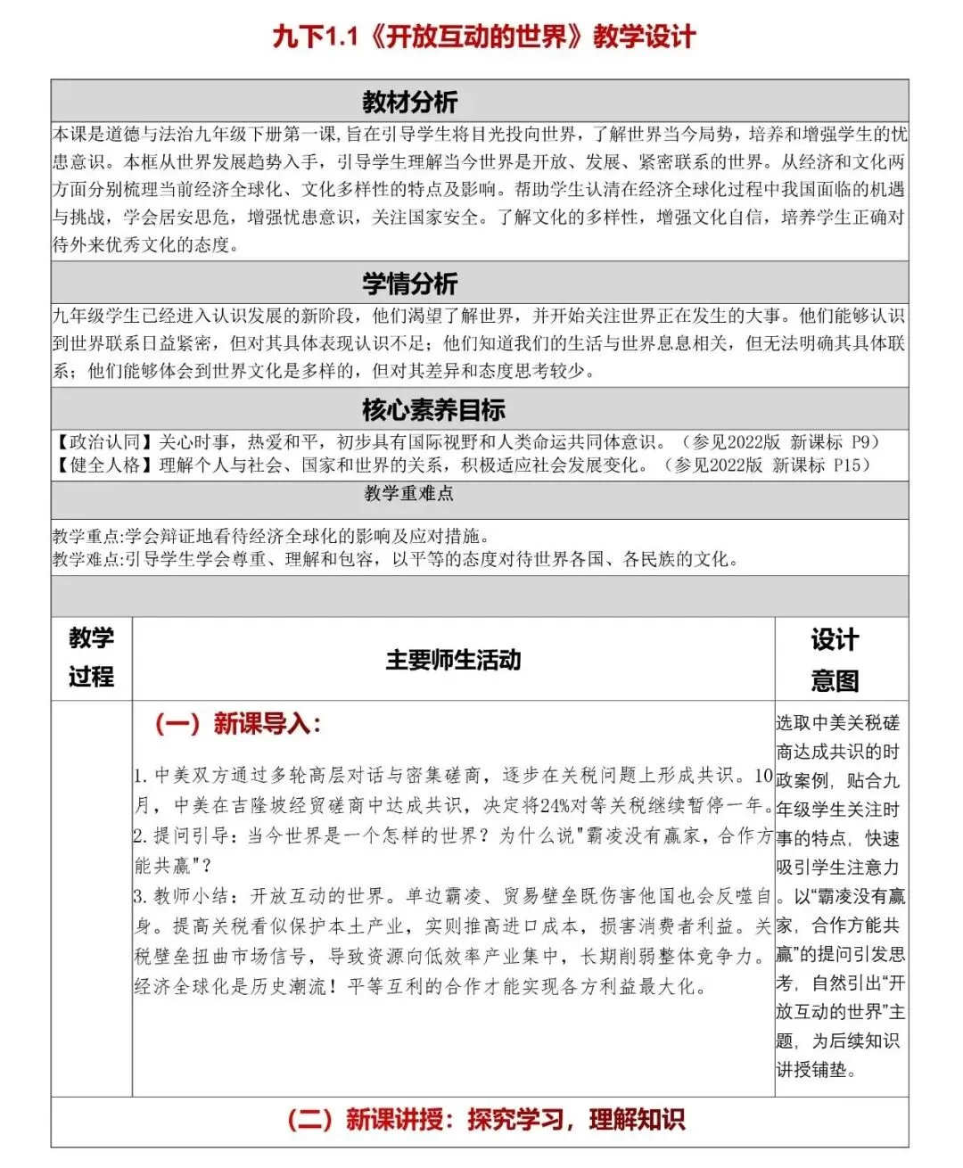 九下1.1《开放互动的世界》讲课稿
