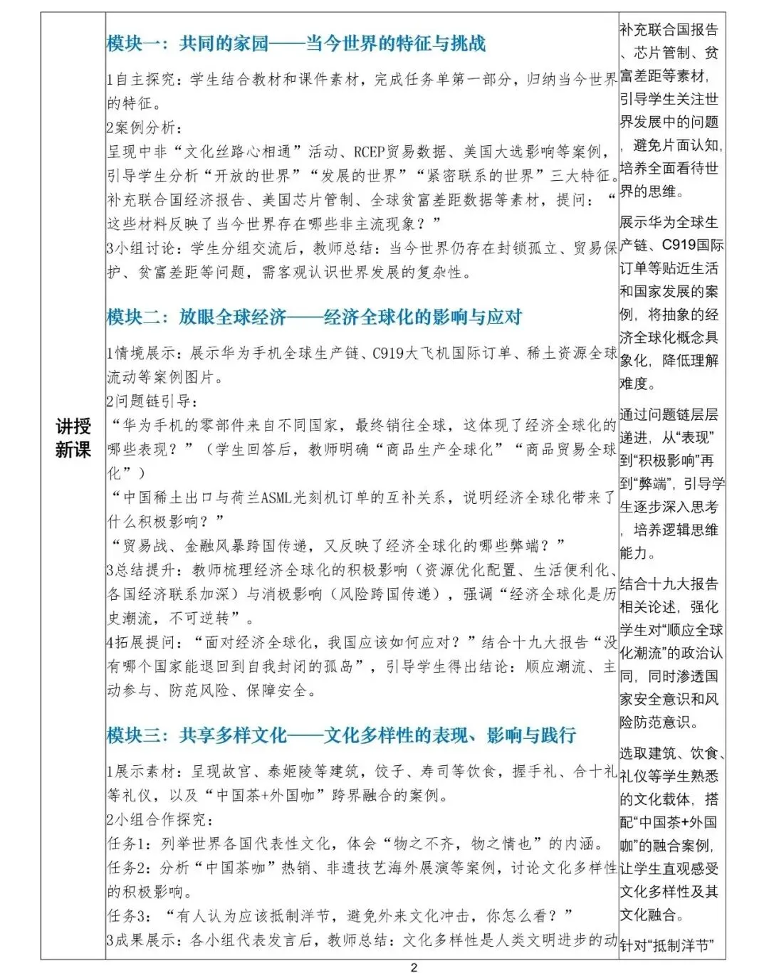 首先,我们来探究第一个模块——共同的家园。请大家结合教材和课件上的素材,自主完成任务单第一部分,试着归纳当今世界的特征。给大家3分钟时间,稍后我们一起交流。
