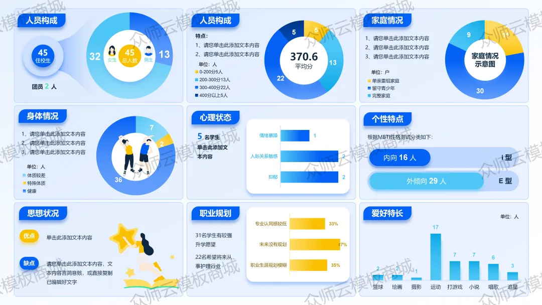 那为了学情分析更加有说服力,需要添加一些图表加以说明,如果老师不知道怎么设计,我们可以直接套下面的模板。