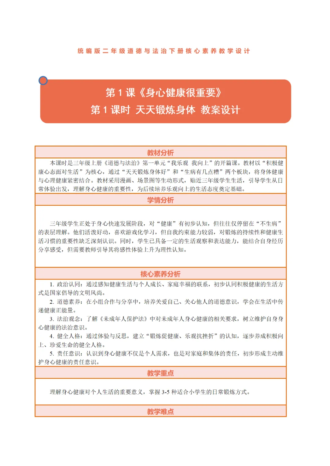 速存!新教材二年级数学下册教案,表格可编辑,免费领