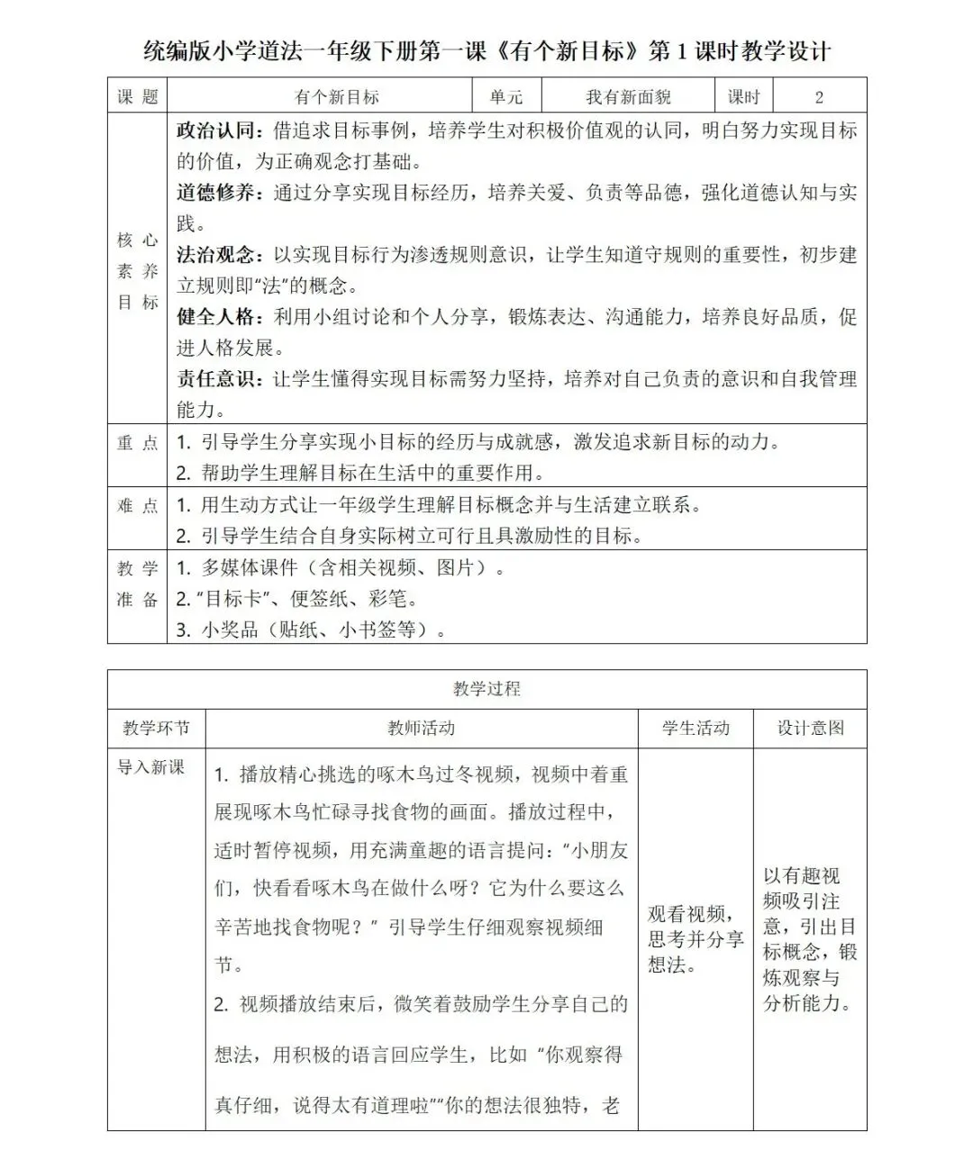 2026春道德与法治一年级下册核心素养教案+教学设计