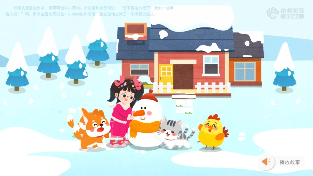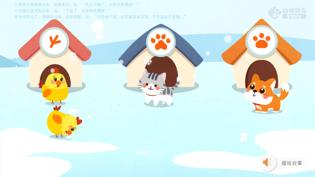 ——其实呀,这几只小动物之前从没见过雪,它们和雪之间发生了一件有趣的故事,我们一起来听听吧。