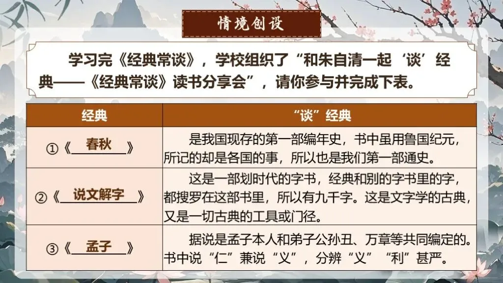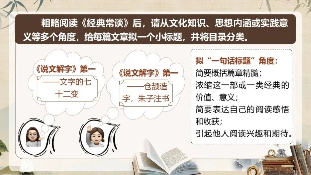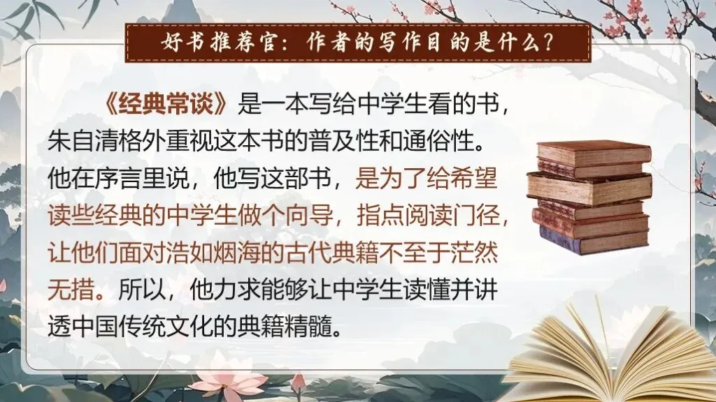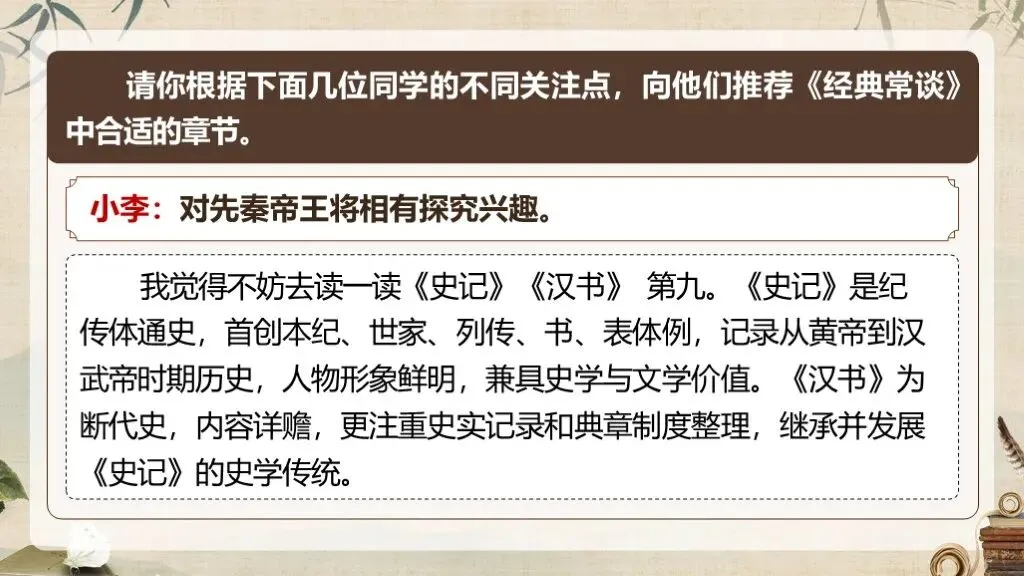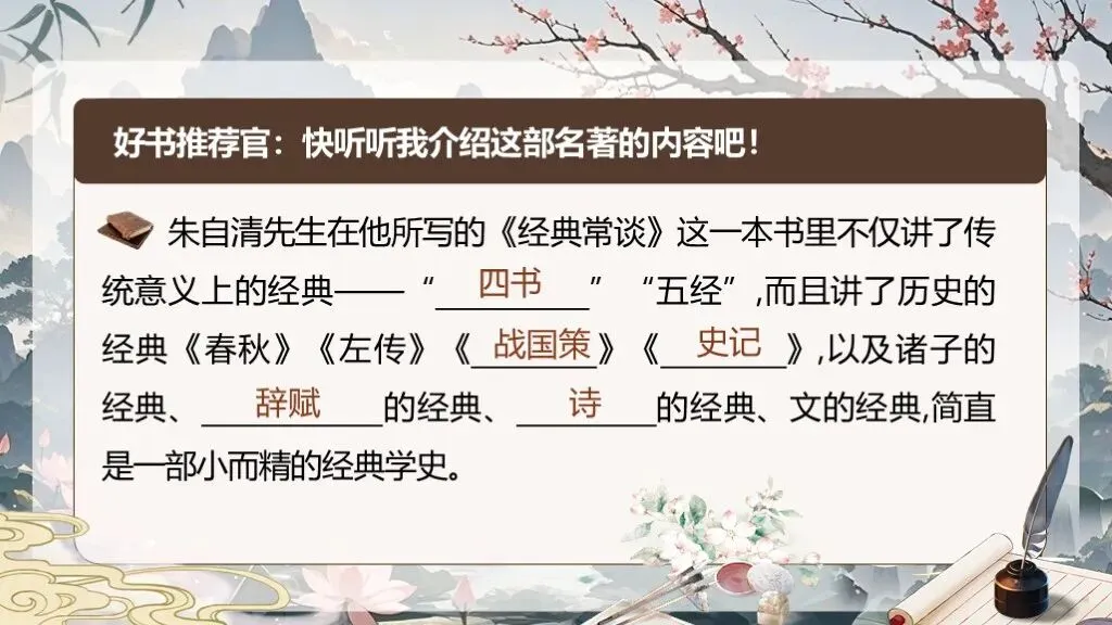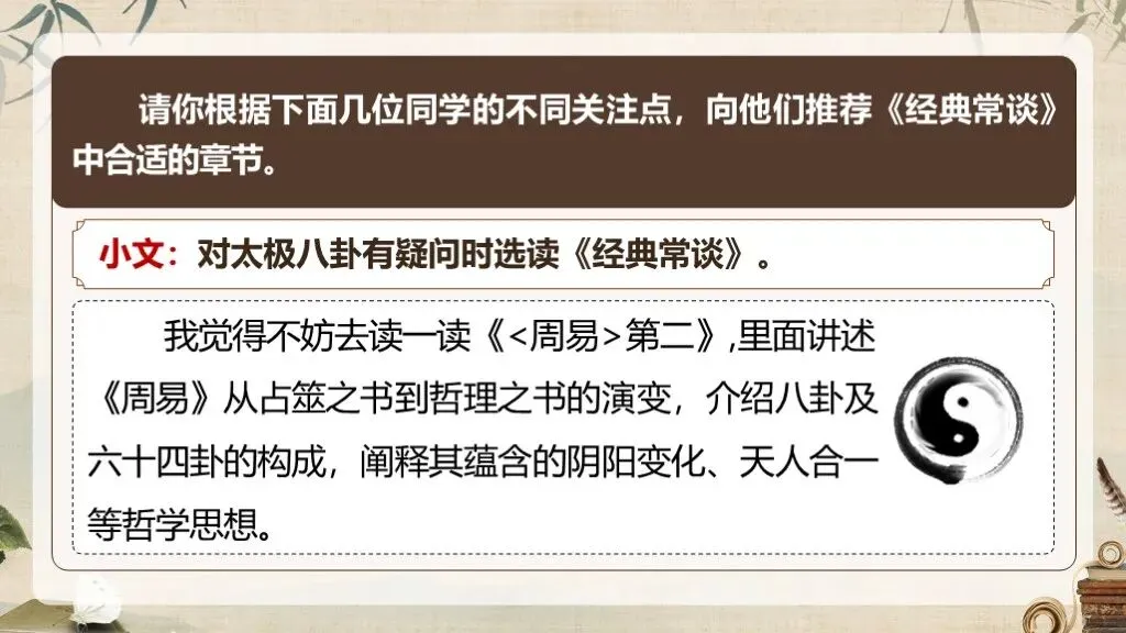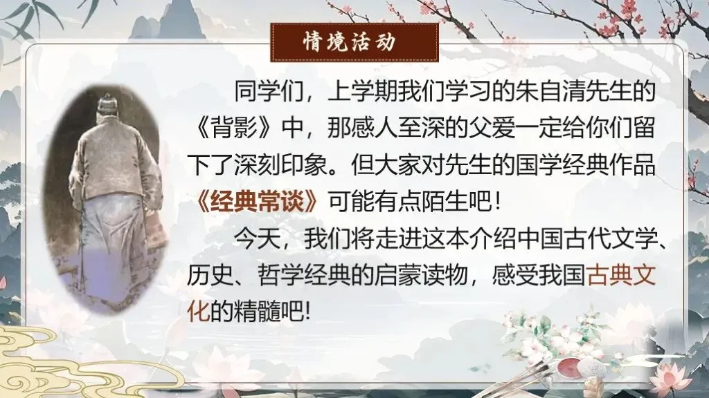 《经典常谈》作为八年级下册语文教材中的名著导读内容,占据着独特且重要的地位。在部编版语文教材体系中,它是引导学生深入了解中国传统文化经典的关键桥梁 ,是培养学生文化自信、提升文学素养的重要凭借。当下,传承和弘扬中华优秀传统文化成为教育的重要使命,《经典常谈》的入选,适时地为学生打开了一扇窥探传统文化宝库的大门。