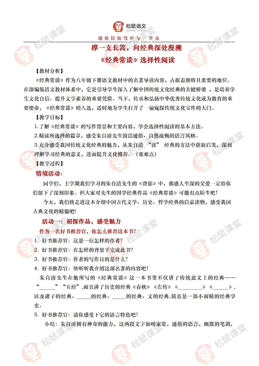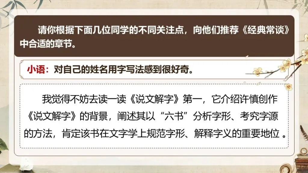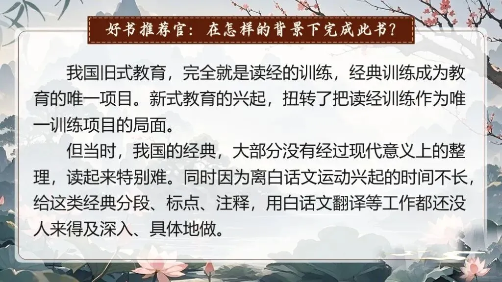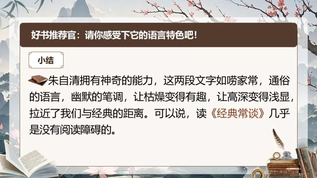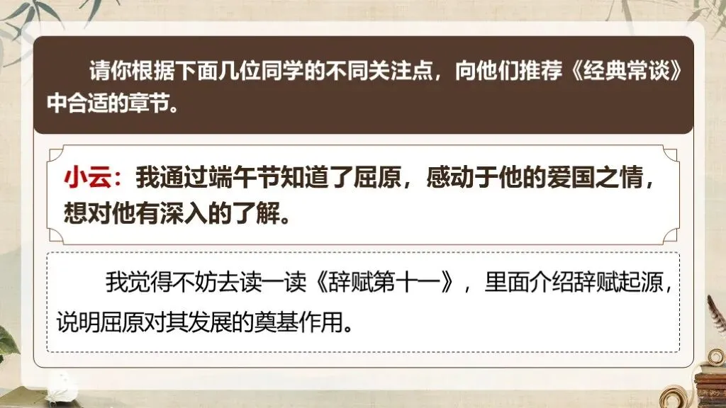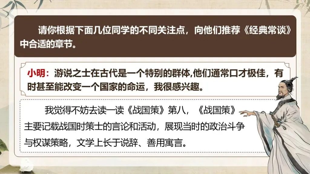 《经典常谈》作为八年级下册语文教材中的名著导读内容,占据着独特且重要的地位。在部编版语文教材体系中,它是引导学生深入了解中国传统文化经典的关键桥梁 ,是培养学生文化自信、提升文学素养的重要凭借。当下,传承和弘扬中华优秀传统文化成为教育的重要使命,《经典常谈》的入选,适时地为学生打开了一扇窥探传统文化宝库的大门。