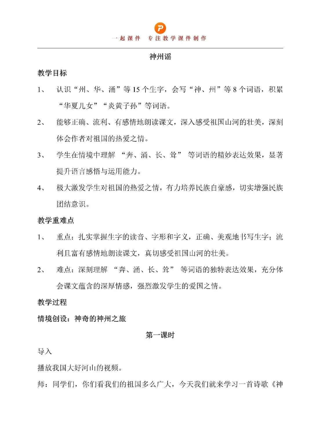 >二下第三单元《神州谣》 | 教学课件+教学设计
