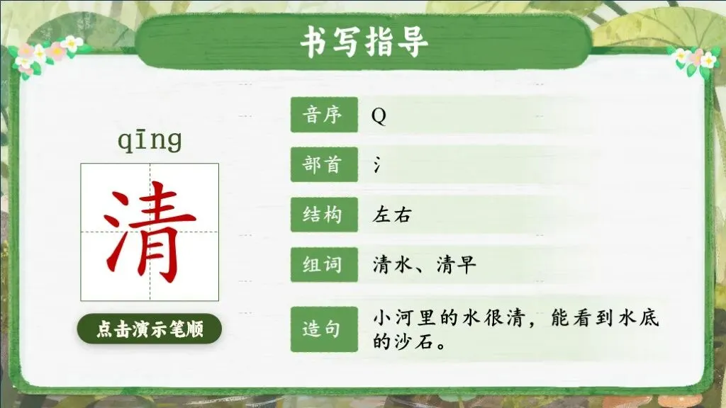 师:紧急警报!紧急警报!最近害虫大军泛滥,它们把禾苗啃得歪歪扭扭,“青”字家族的族长急得跳脚,正在招募除虫守护队队员。小勇士们,我们一起出发去支援吧!