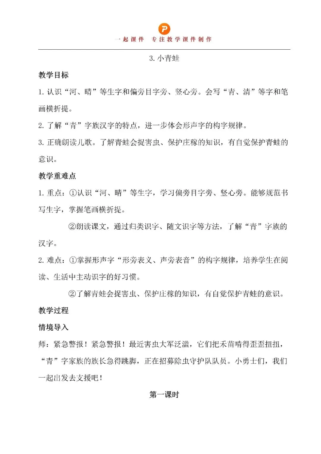 >一下第一单元《小青蛙》 | 教学课件+教学设计