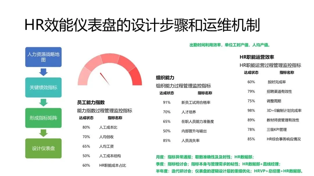 动态优化:根据企业发展阶段(初创→成长→成熟),调整指标目标值与核心关注重点(如初创期重点看招聘达成率、成长期重点看人均效能)。