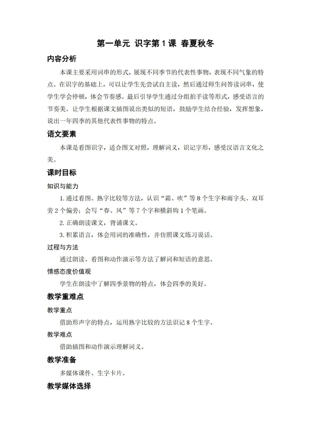 小学语文1下册《精华版教案》26春
