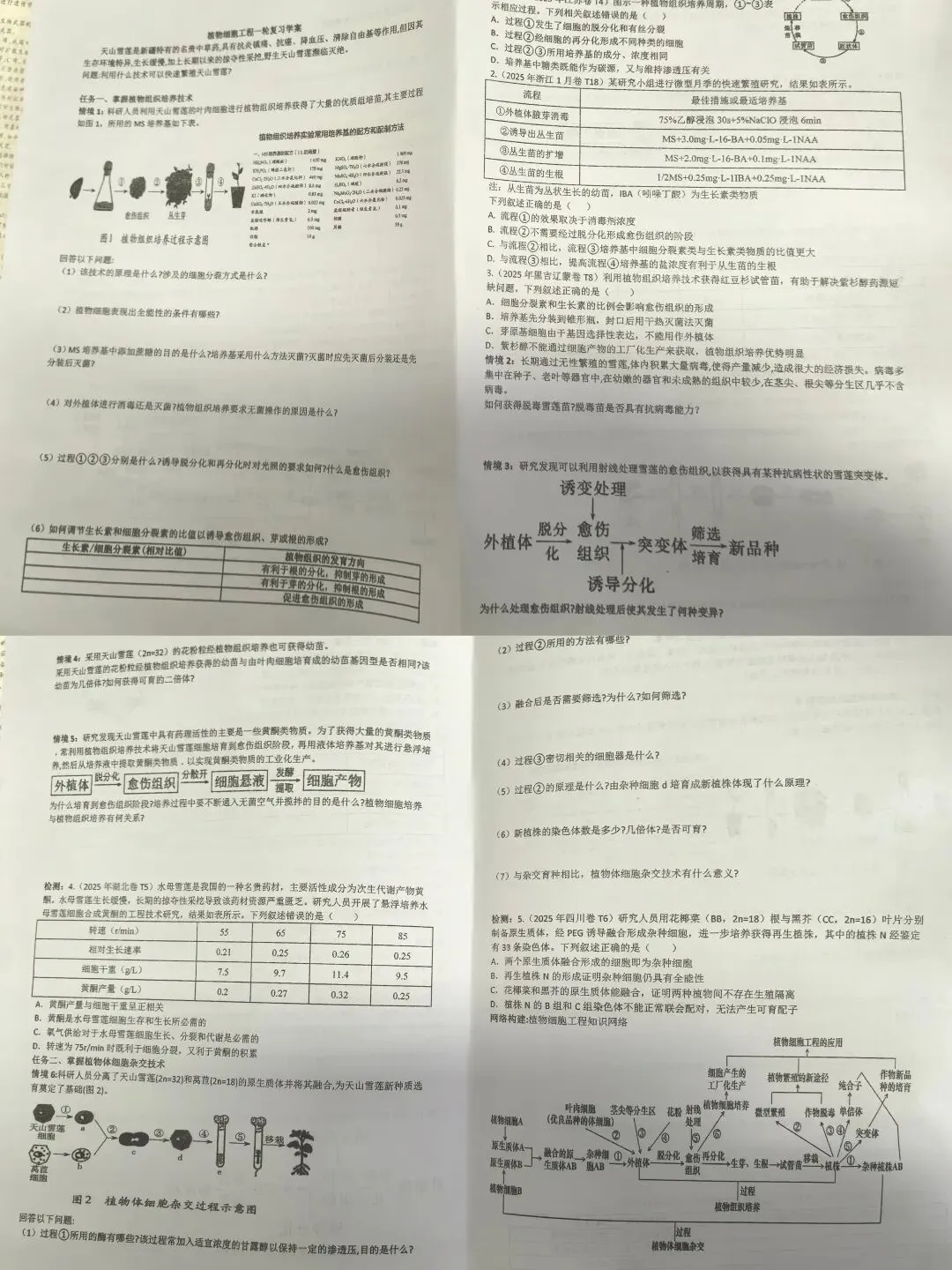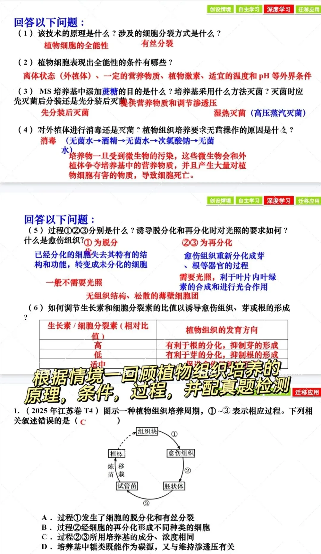 通过情境1复习植物组织培养的原理,条件,过程。而且配套的检测题目全部都是真题,每个情境下面配套。