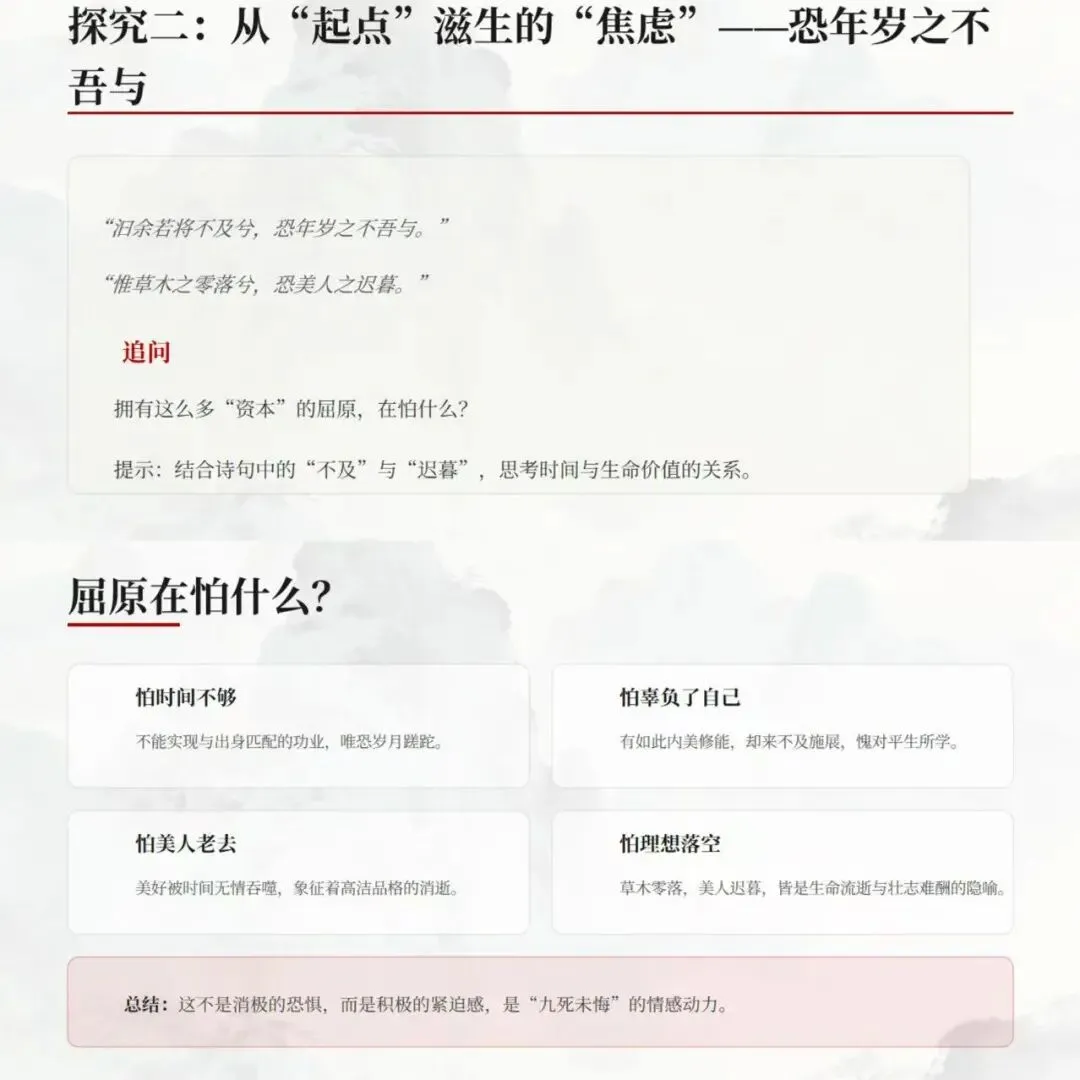 探究二:从“起点”滋生的“焦虑”——恐年岁之不吾与