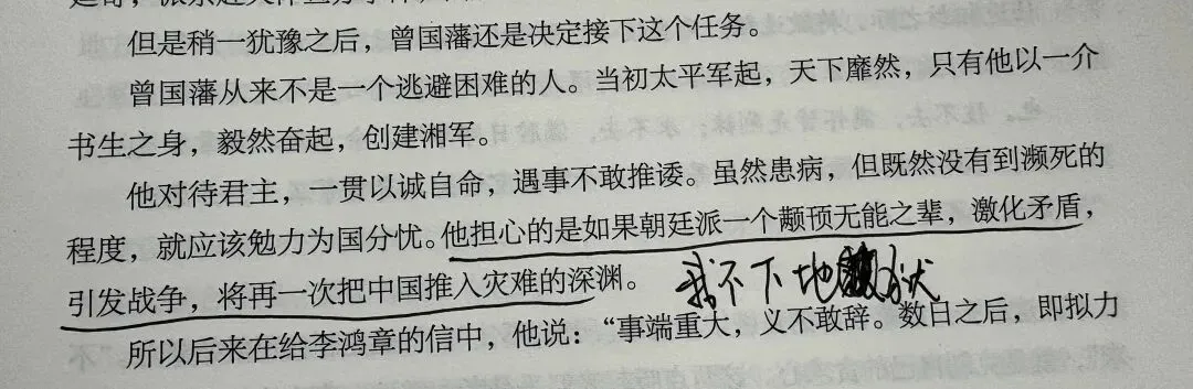 这个事情发生之后,那趾高气扬的“洋大人”当然就不乐意了,法国直接把军舰开过来了,要求清政府给个说法,于是慈禧让曾国藩来查办此案。当时曾国藩的幕僚和学生都一致反对他接管此案,认为曾国藩一生的威望在此一行,稍有不慎,千古无底。就是说这件事不论怎么处理,都难以让各方满意自己的一世英名很有可能毁在此案上。因为在晚清以来,有一个规律性现象,就是在对外交往中,凡事主张强硬,甚至主张“蛮不讲理”的人,通常都会获得民众的热烈欢呼,被称为“民族英雄”,只要向洋人妥协讲理的,几乎都会被骂卖国、汉奸。我觉得他好难啊,成功镇压太平天国取得如此辉煌的成绩,已经位极人臣,官拜直隶总督、两江都督,而且自己也不是负责涉外的,当时身体疾病,完全可以不接手这个烫手山芋。因为以他的聪明才智,一定是可以预料到这件事情的结果和走向的。但他担心自己不去,放眼全国,无人能去,为了避免事情更加恶化,引起战争。于是我笔注「我不下地狱谁下地狱」曾国藩接手后,他查明挖眼剖心纯属谣言(就是说法国人确实被冤枉了),但为避免开战、委曲求全,采取妥协方案:处死民众18人,流放25人,将天津地方官员革职流放,赔偿各国白银五十余万两,并派官员赴法国道歉。此事让曾国藩一世清名尽毁,被朝野上下痛骂为卖国,声望跌至谷底,也成为晚清中外冲突与外交屈辱的典型事件。