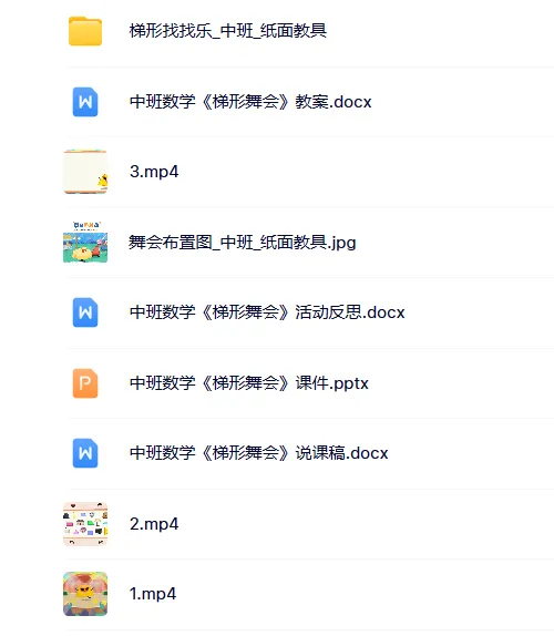 l纸面教具:《舞会布置图》《梯形找找乐》。