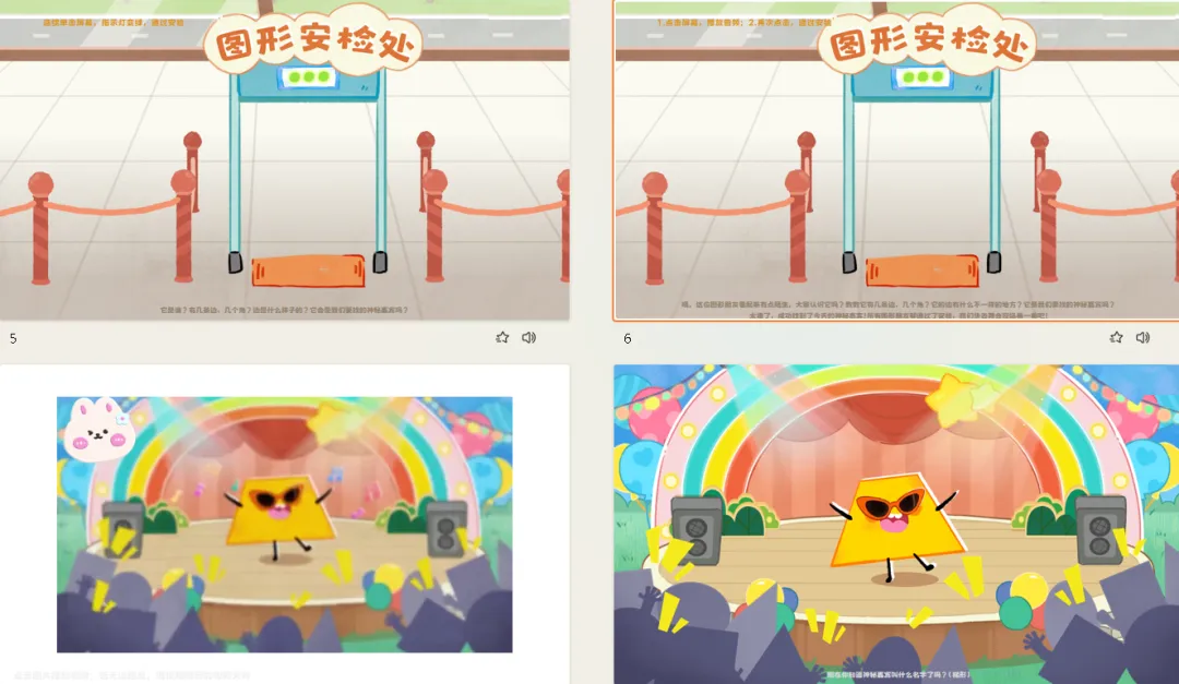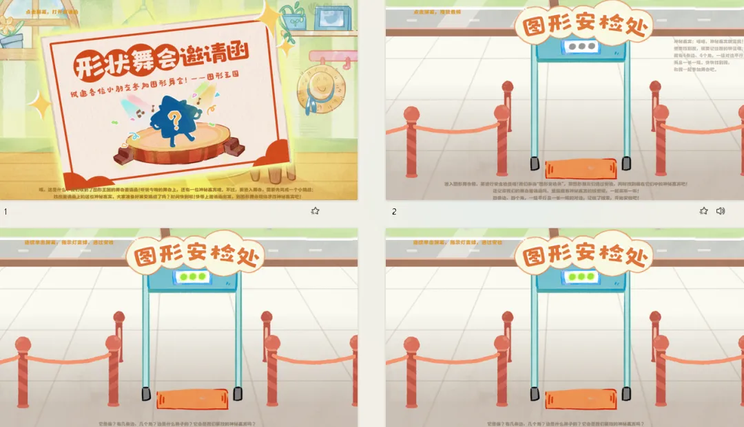 ——进入图形舞会前,要进行安全检查哦!我们来当“图形安检员”,帮图形朋友们通过安检,同时找到藏在它们中的神秘嘉宾吧!