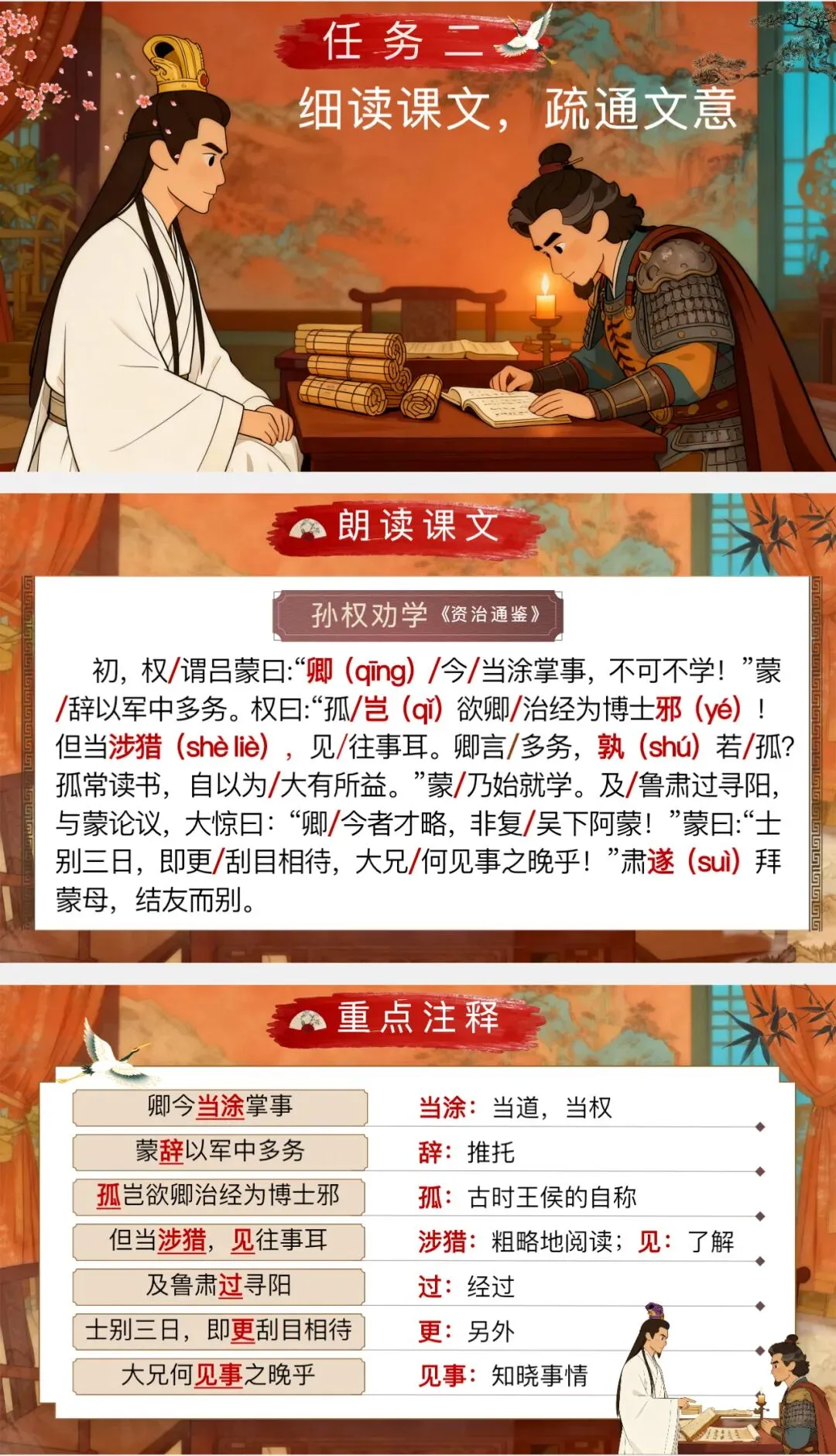 七年级下册语文孙权劝学公开课课件+教学设计+逐字稿