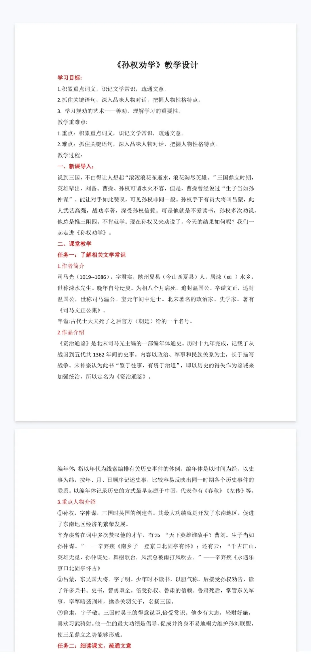 >七年级下册语文孙权劝学公开课课件+教学设计+逐字稿