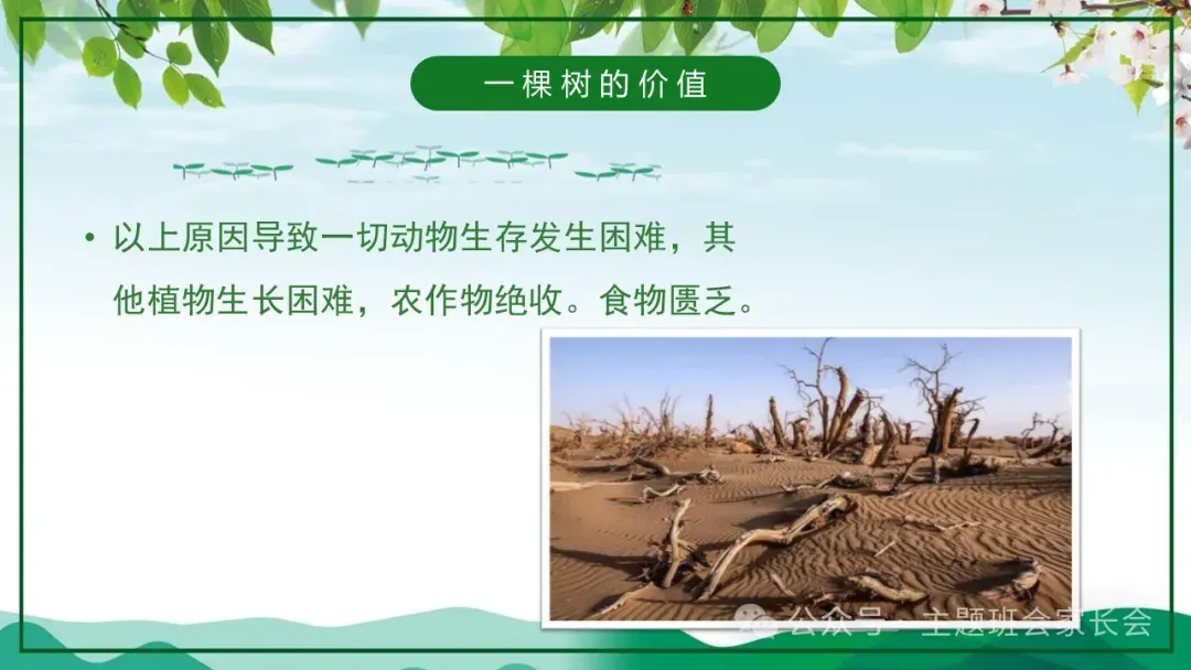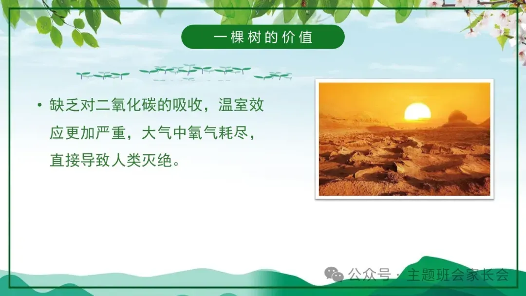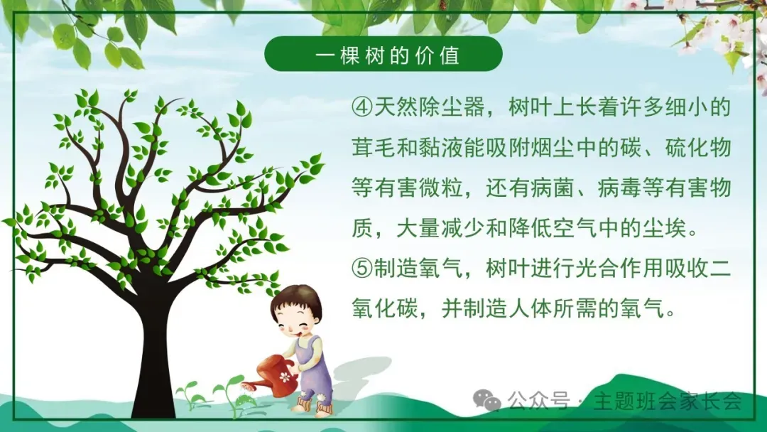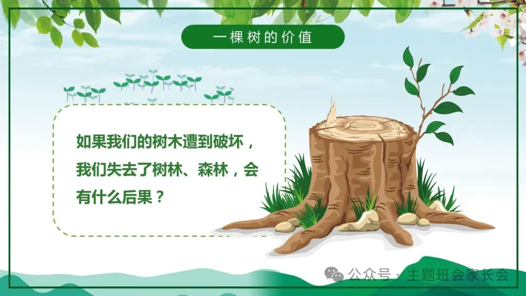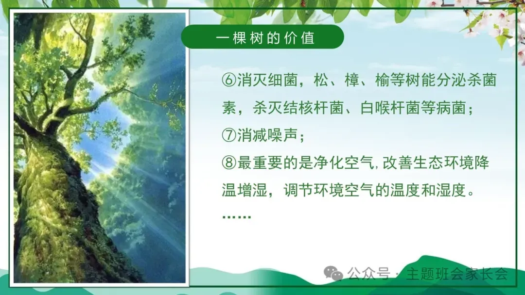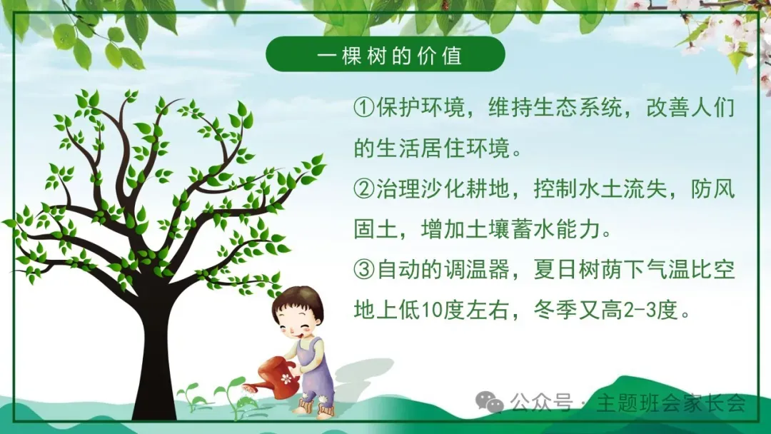 3.12植树节主题班会ppt课件,珍爱绿色,一棵树的价值与意义。