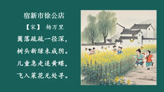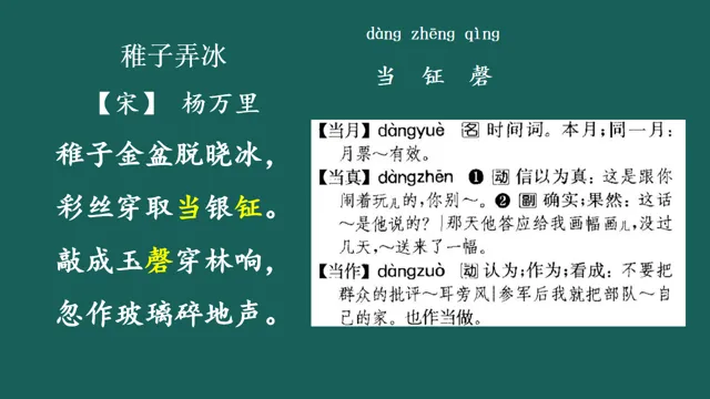 (1)用同样的方法理解诗题、了解诗人杨万里,回顾学过的古诗《宿新市徐公店》、朗读齐读,读准生字“钲”“磬”。
