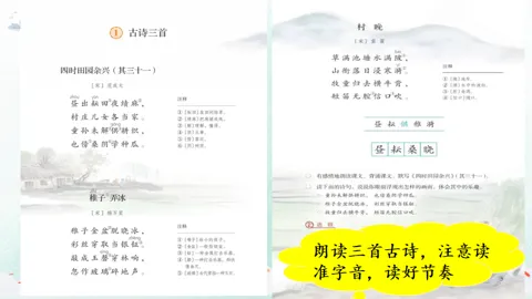 2.预习《稚子弄冰》和《村晚》。读熟这两首诗,结合注释和相关资料,理解诗意。