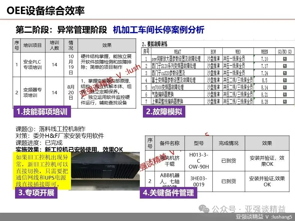 3、考察设备、操作、工艺造成性能降低和合格品率问题,体现全员参与关注设备的思想。