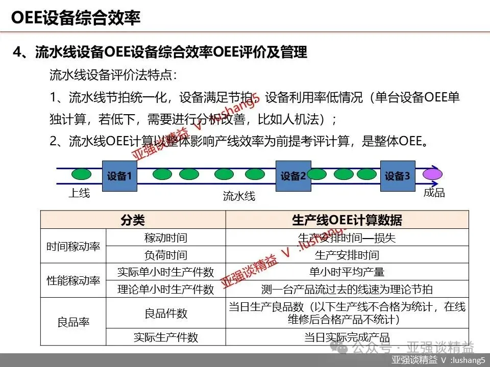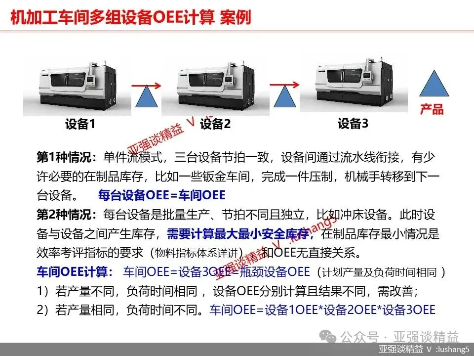 1、一些企业以产品最终下线数量及时间为管理点;取设备3OEE值;提升企业OEE水平,则是提升设备3OEE水平,设备1和设备2计算差到机极致,按照TOC理论,只要保住设备3的运转即可;掩盖了浪费,片面性;