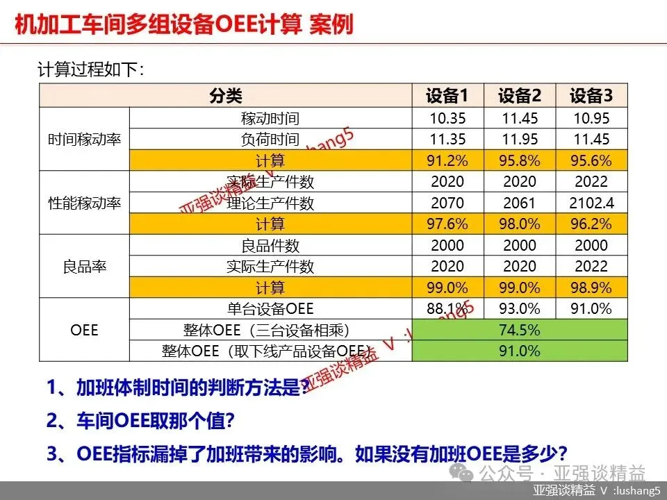 2)若产量相同,负荷时间不同。车间OEE=设备1OEE*设备2OEE*设备3OEE