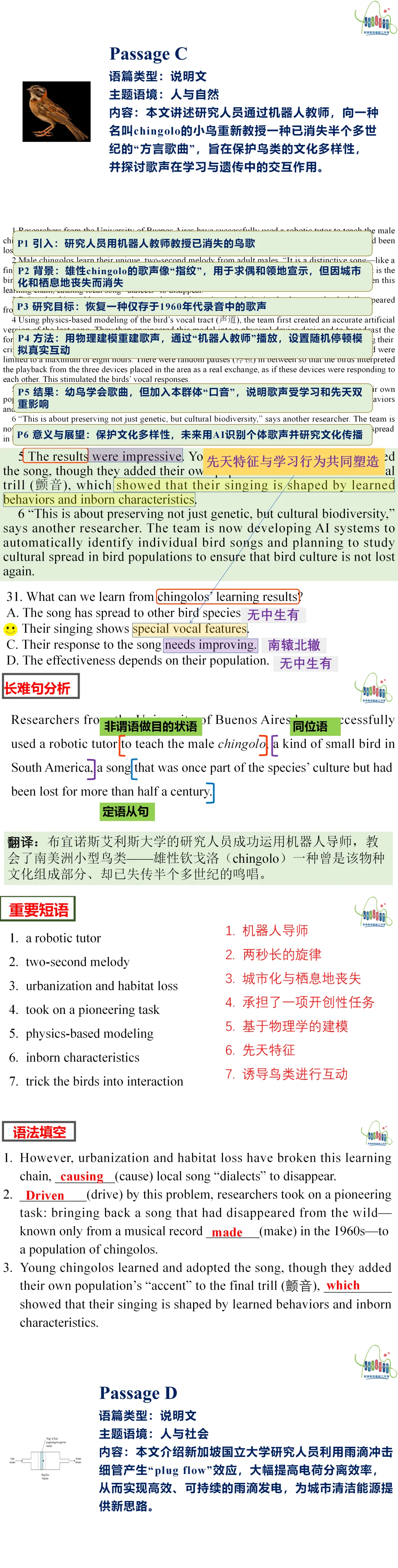 以下仅展示部分内容(完整版内容非常丰富)(所有阅读语篇都是和C篇一样的解析模式,包括核心词汇,长难句分析